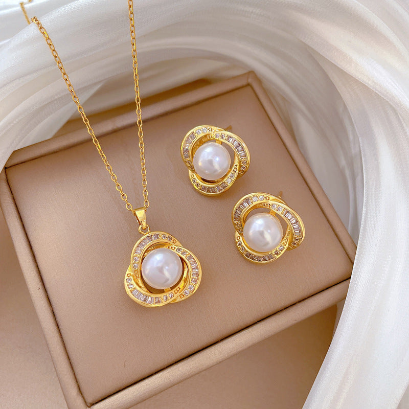Hollow Bird’S Nest Pearl Full Diamond Gorgeous Full Diamond Necklace Women’S All-Match Clavicle Chain Set