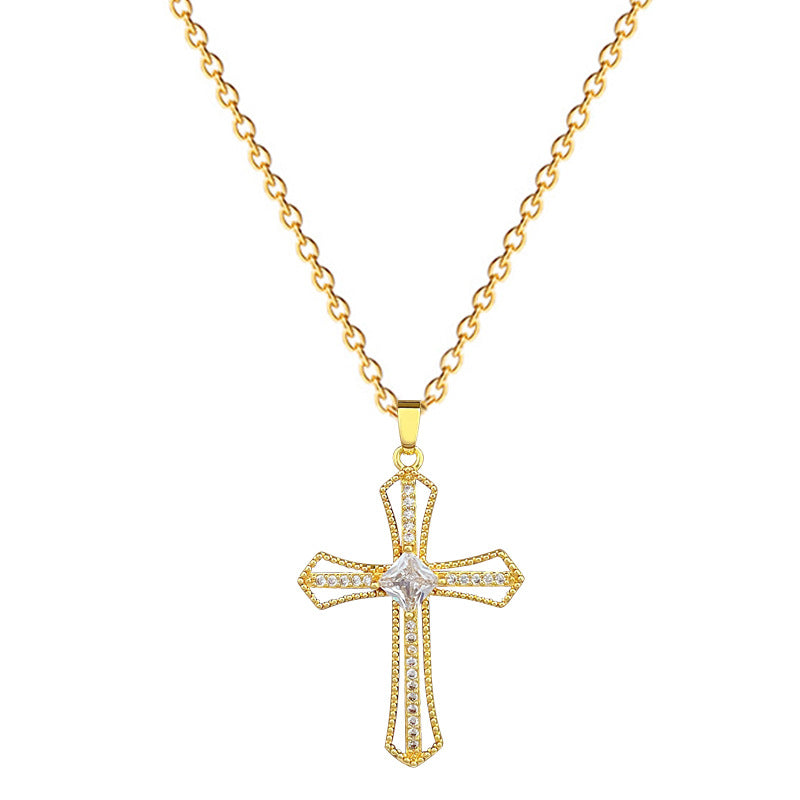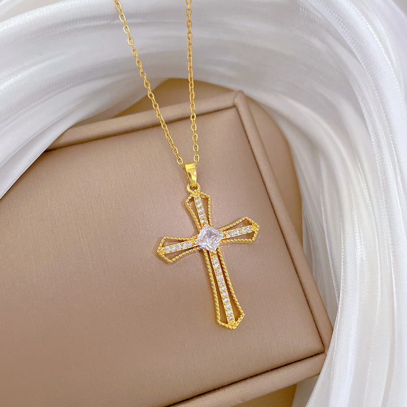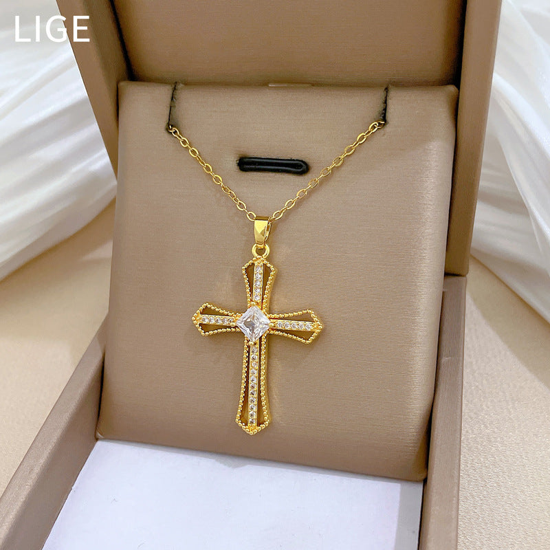 Hollow Cross Fashion Gorgeous Full Diamond Necklace Female Versatile Clavicle Chain Titanium Steel