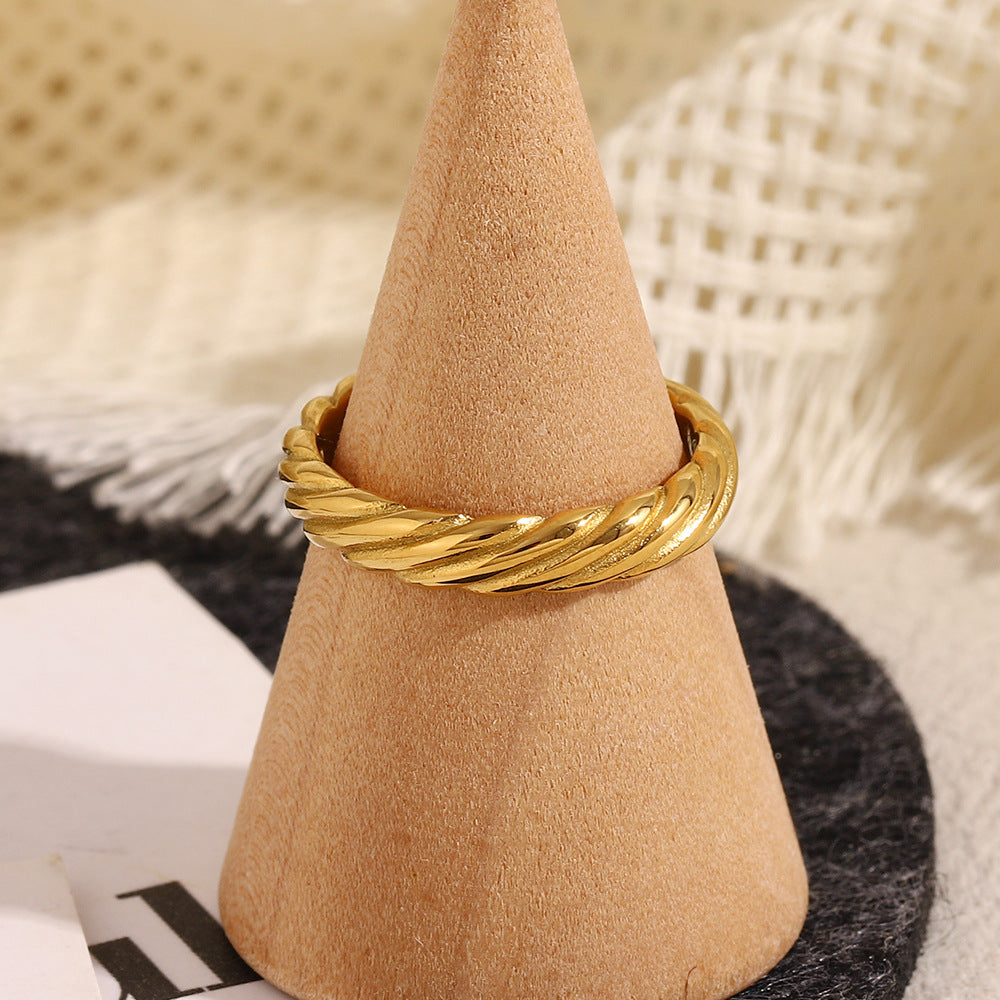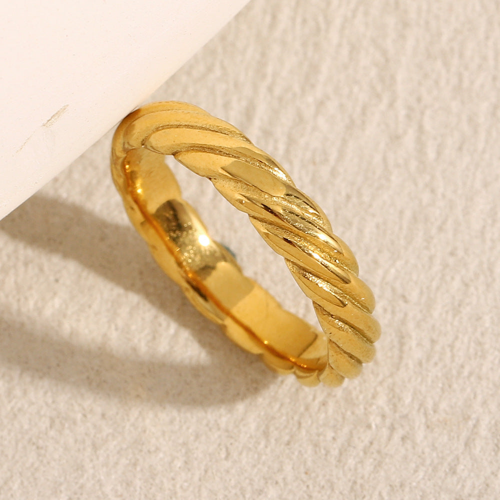 Hot Sale Retro Ring Hand Stainless Steel Plated 18K Gold Classic Twill Ring