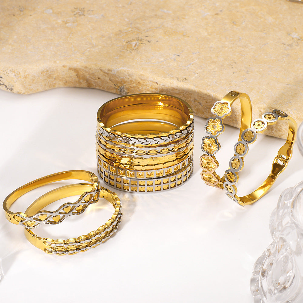 Hot Selling Gold Stainless Steel Bracelet Fashion Flower Wave Star Love Bracelet For Women