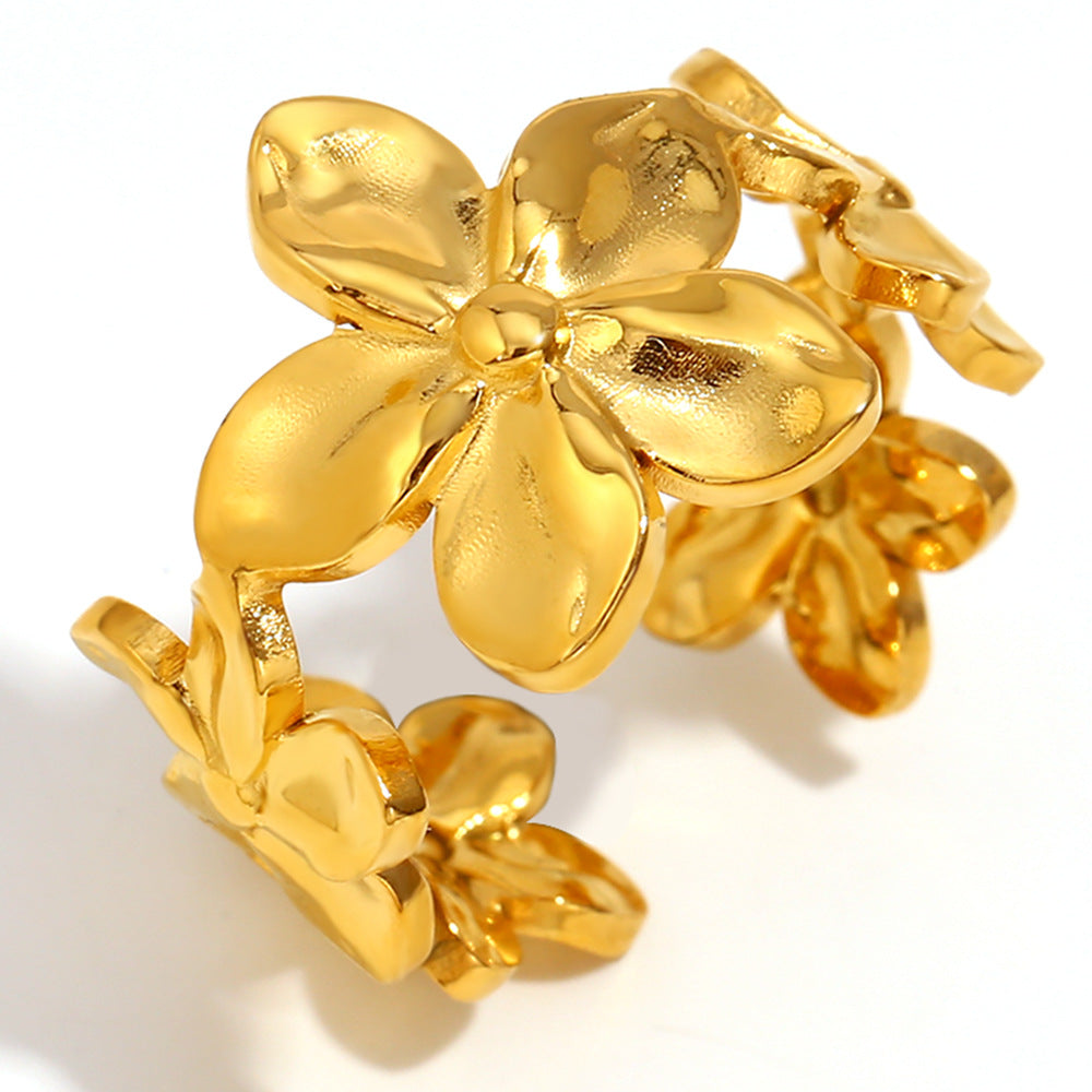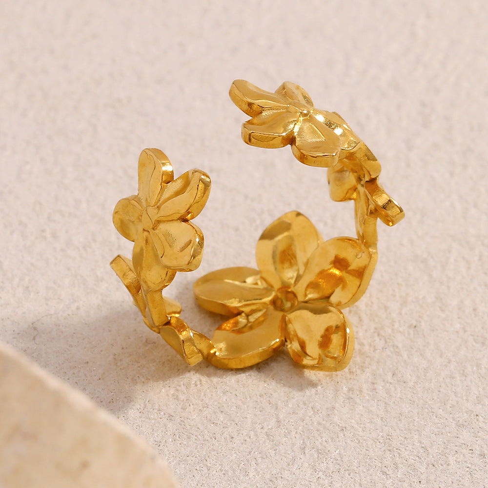 Hot Selling Niche Design Fashion Hand Stainless Steel Plated 18K Gold Flower Open Ring