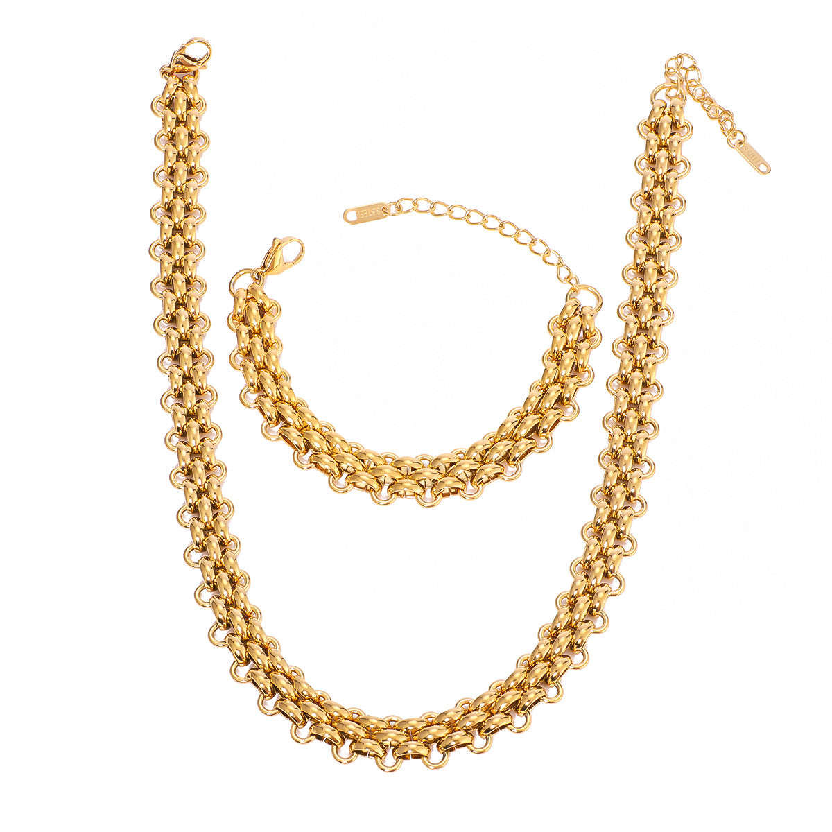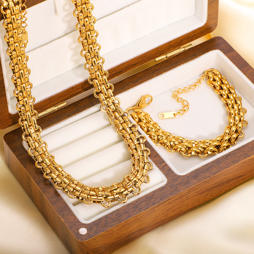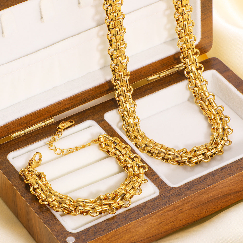 Hot Selling Three-Layer Braided Handmade Chain Necklace Bracelet Set Stainless Steel Hip-Hop Retro Chain Necklace