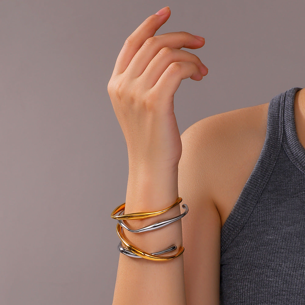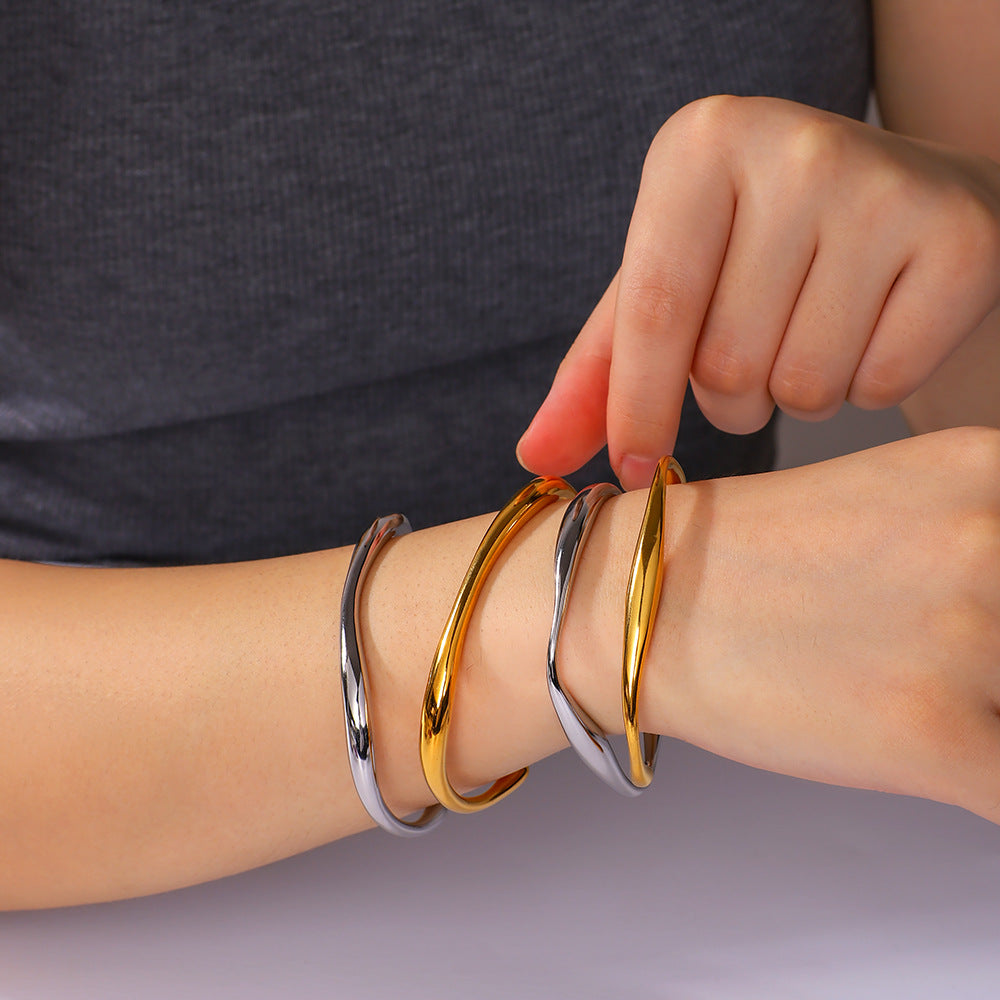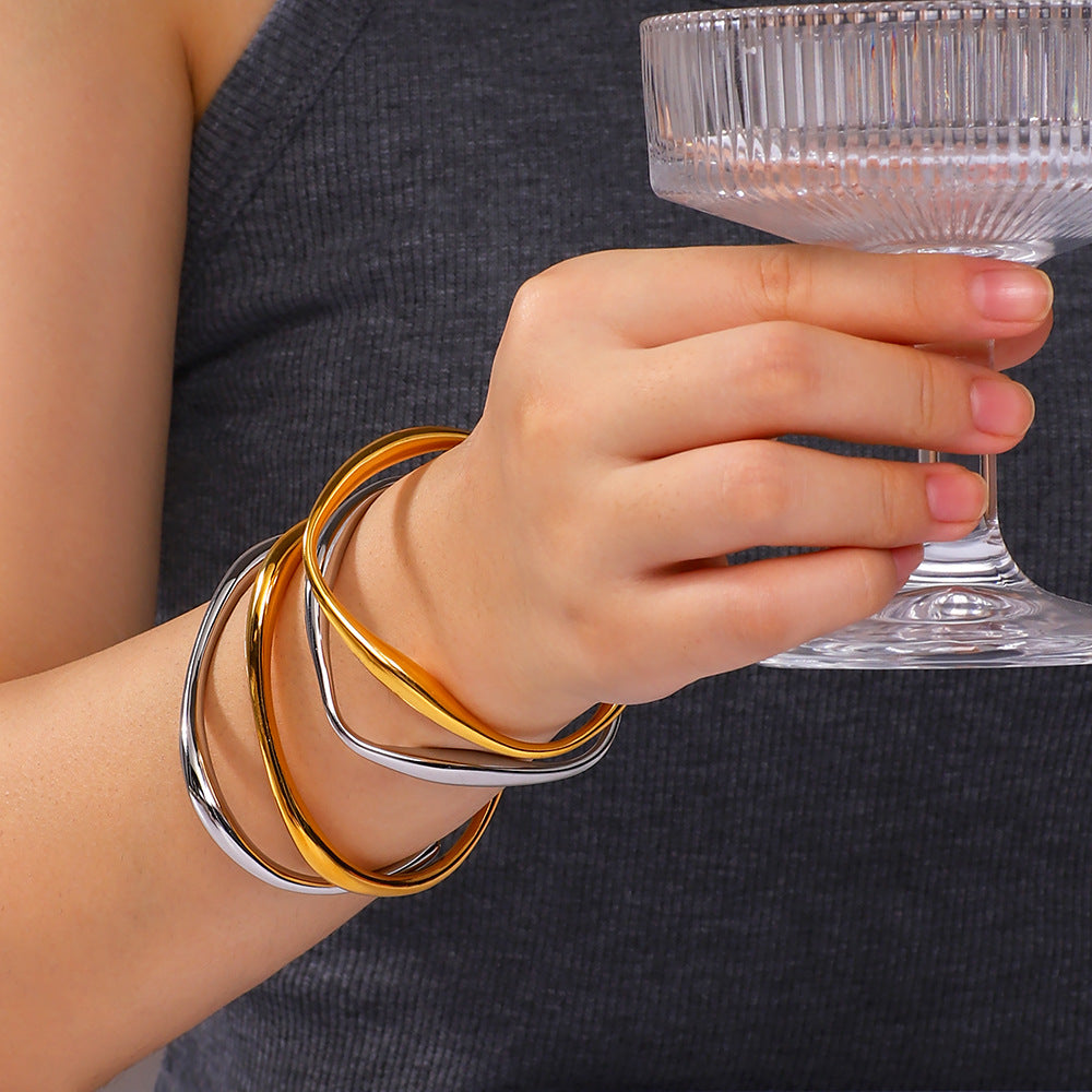 IG Style Circle Irregular Asymmetrical Stainless Steel Electroplating Bangles