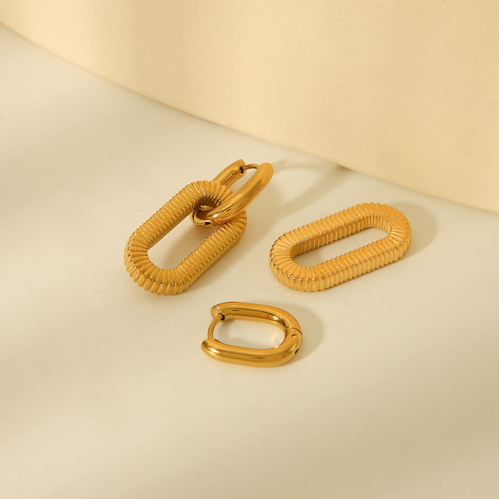 IG Style Convertible Circle Stainless Steel PVD 18K Gold Drop Earrings