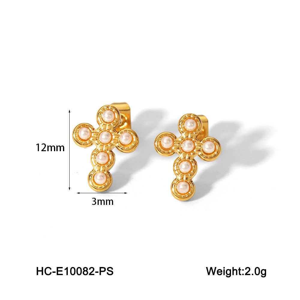 IG Style Cross Geometric Stainless Steel Pearl Inlay Earrings