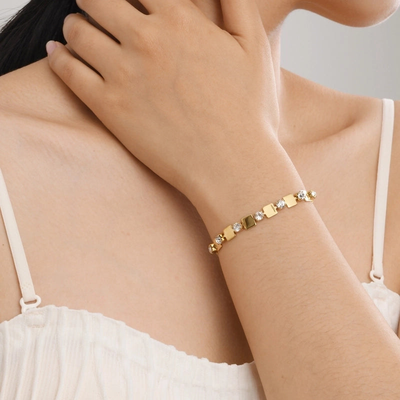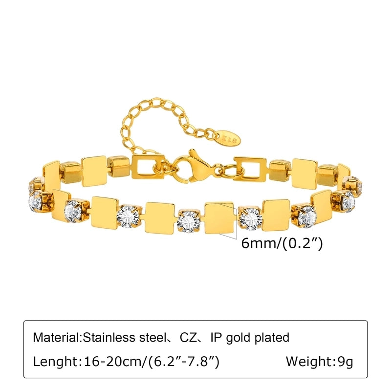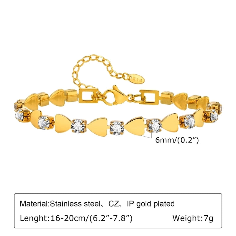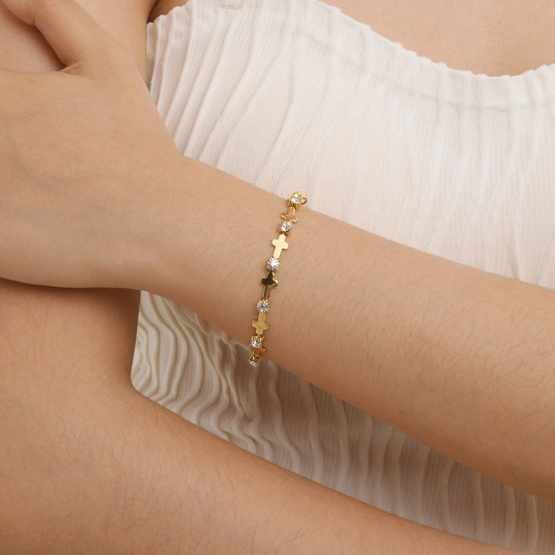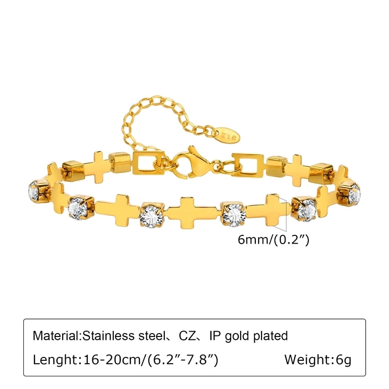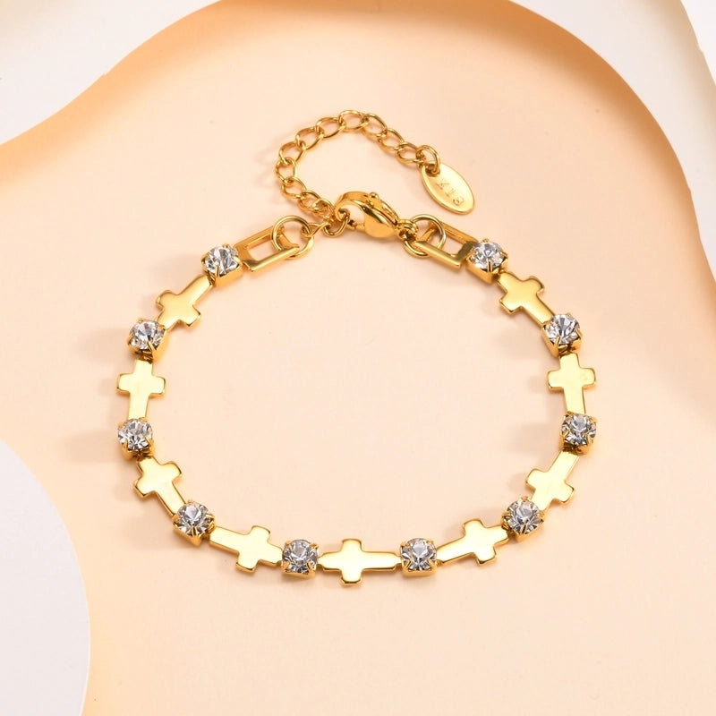 IG Style Cross Square Heart Shape 201 Stainless Steel 18K Gold Plated Zircon Bracelets In Bulk