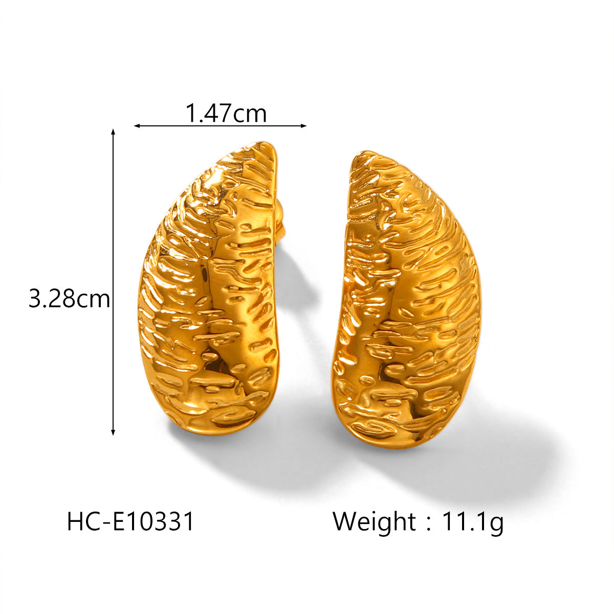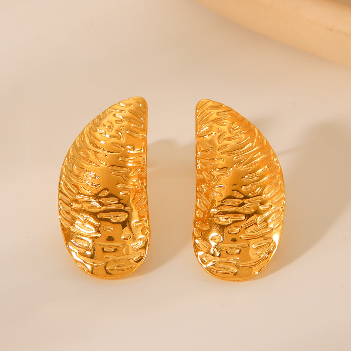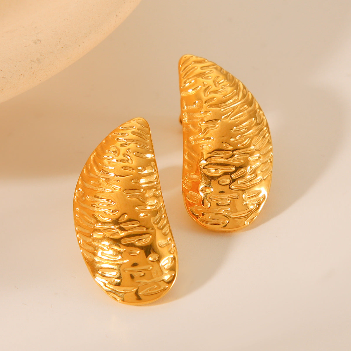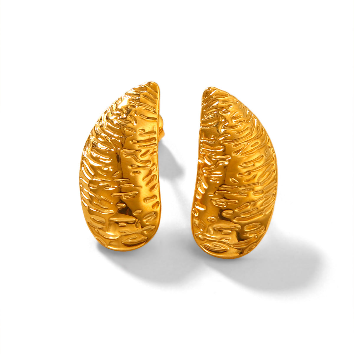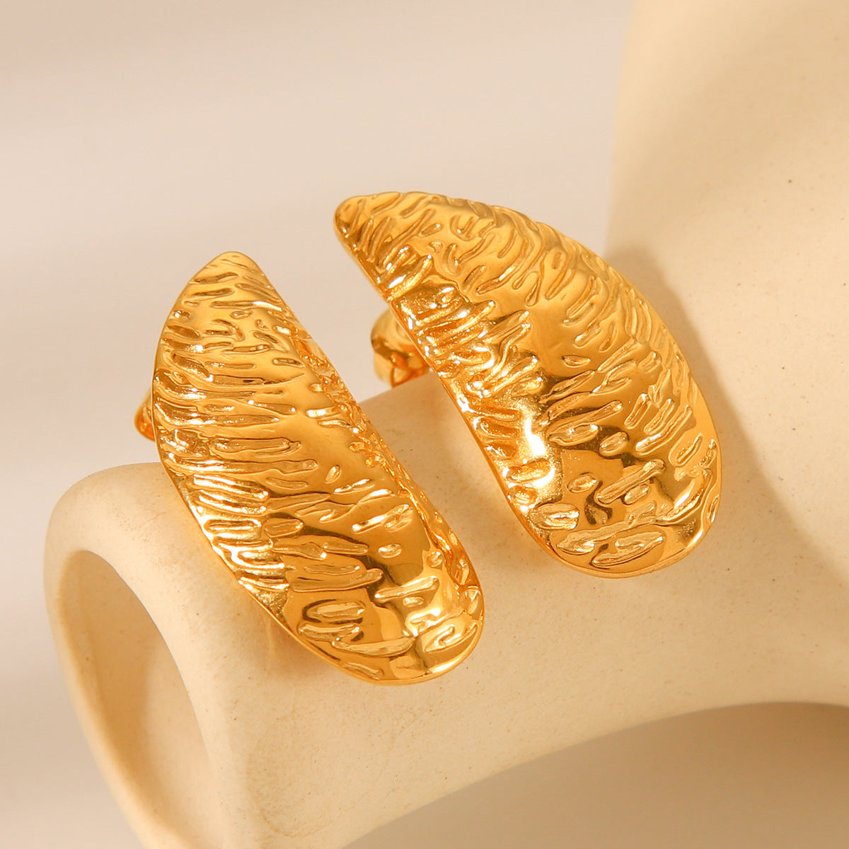 IG Style Droplet Textured Geometric Stainless Steel Electroplating Earrings