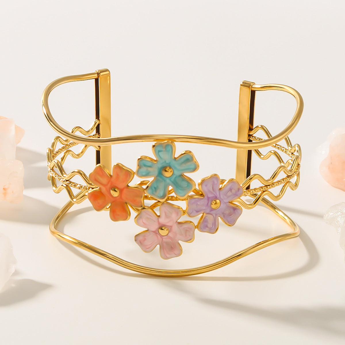 Be the first to review “IG Style Flower Stainless Steel Electroplating Bangles” Cancel reply