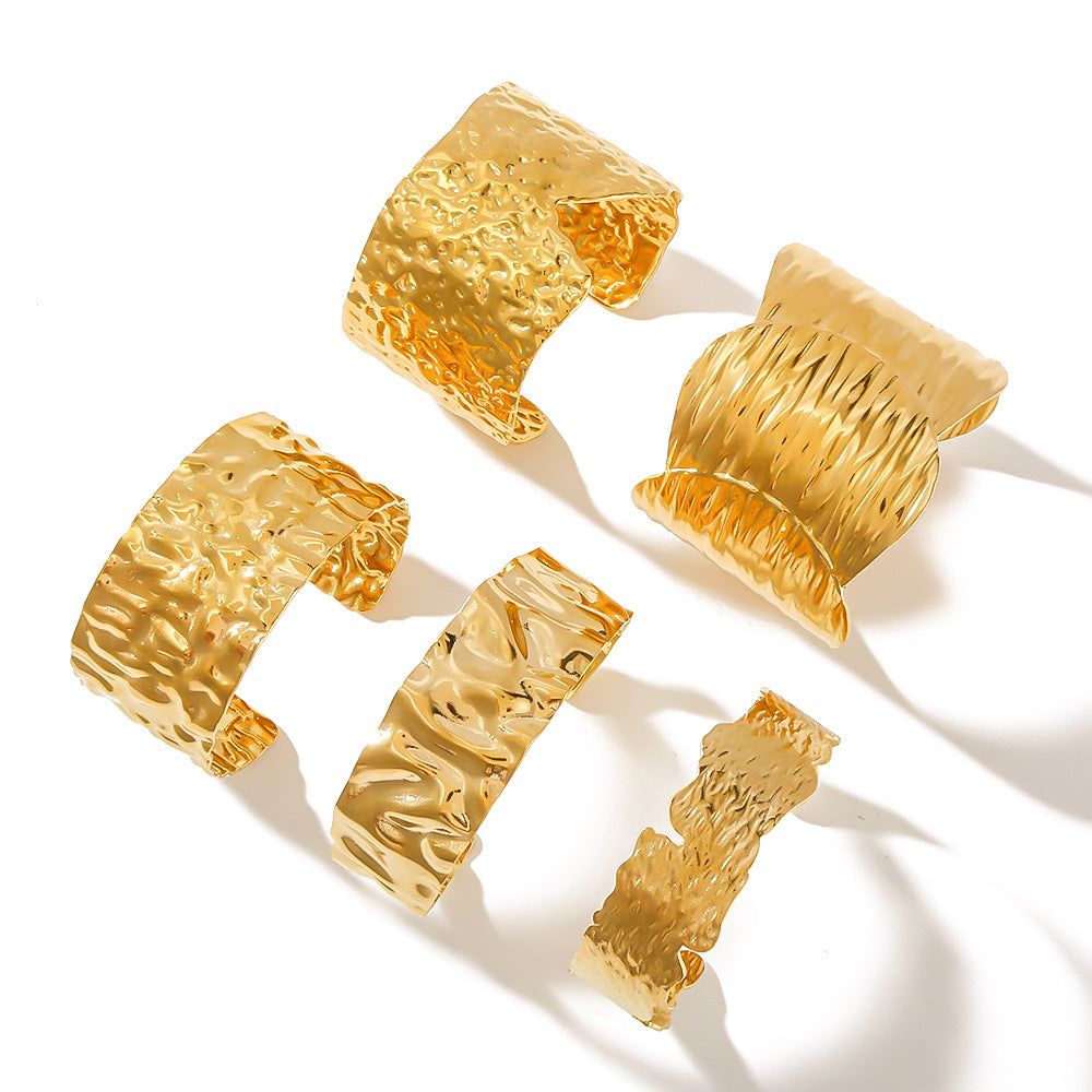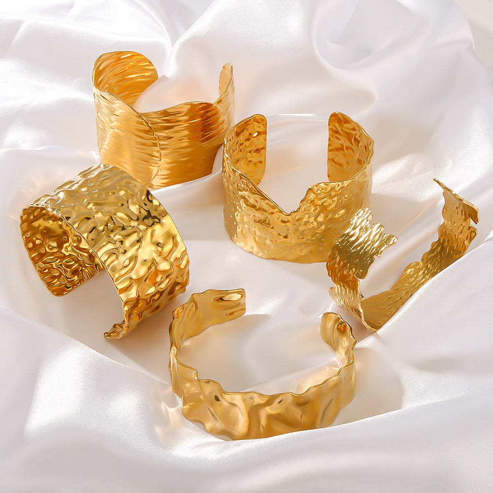 IG Style Irregular Pleated Stainless Steel Electroplating Bangles
