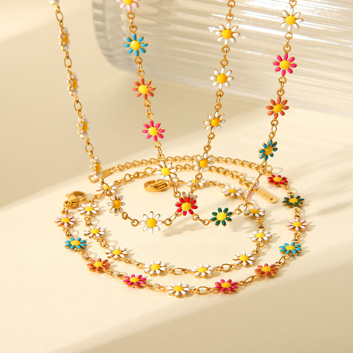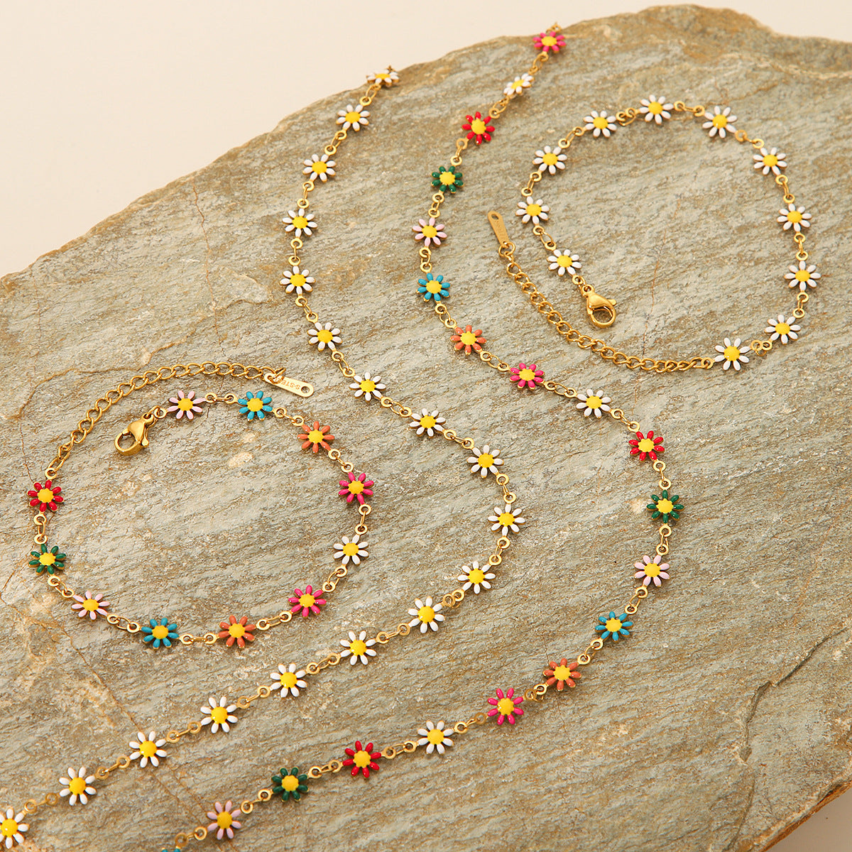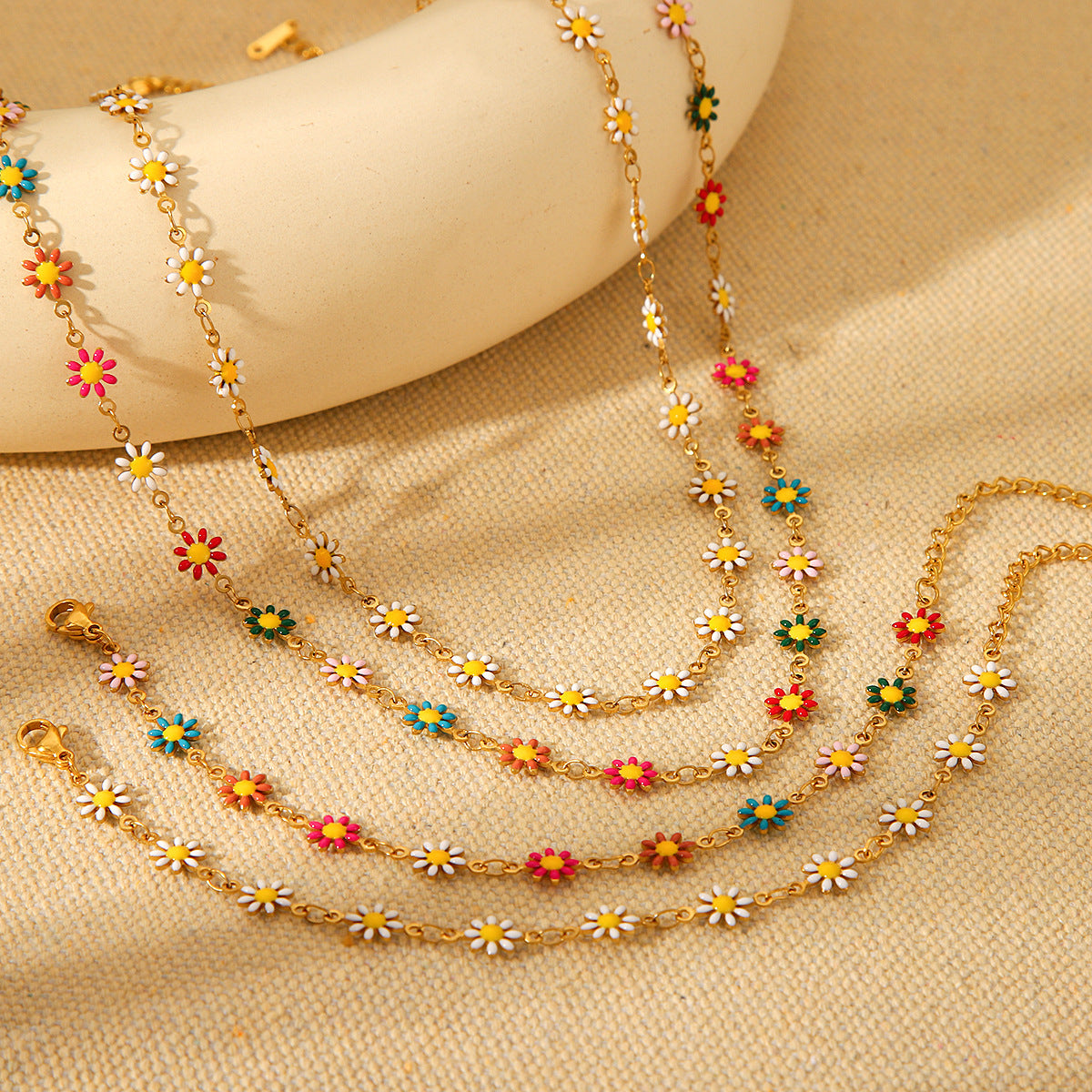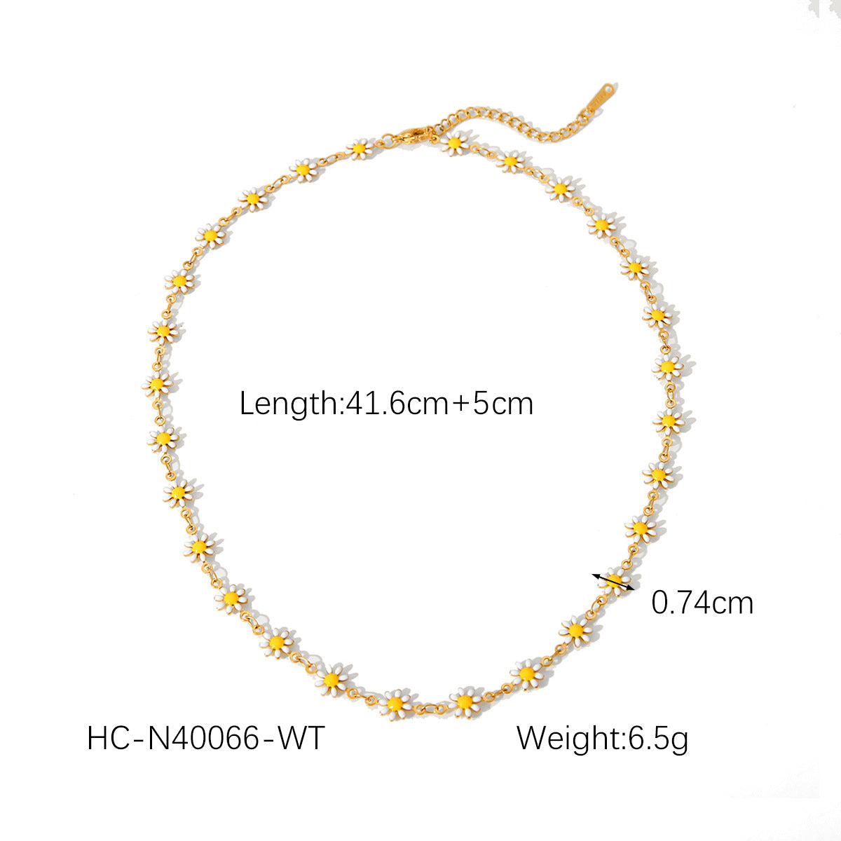 IG Style Little Daisy Flower Geometric Stainless Steel Oil Dripping Necklaces