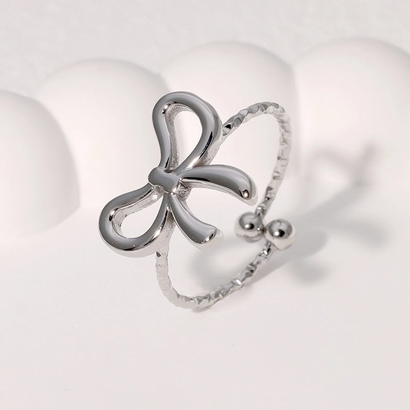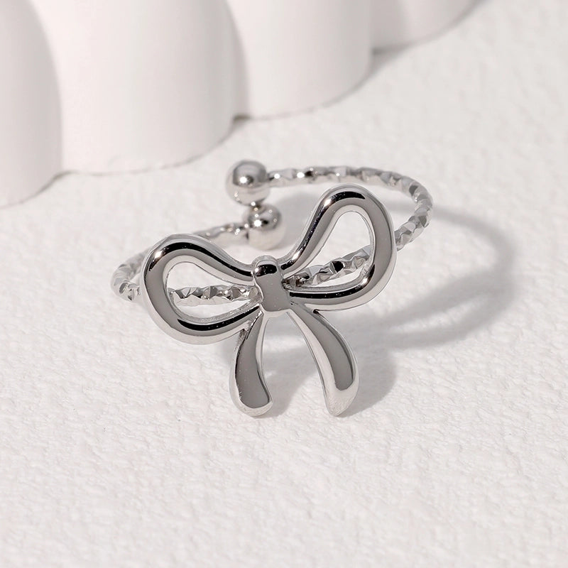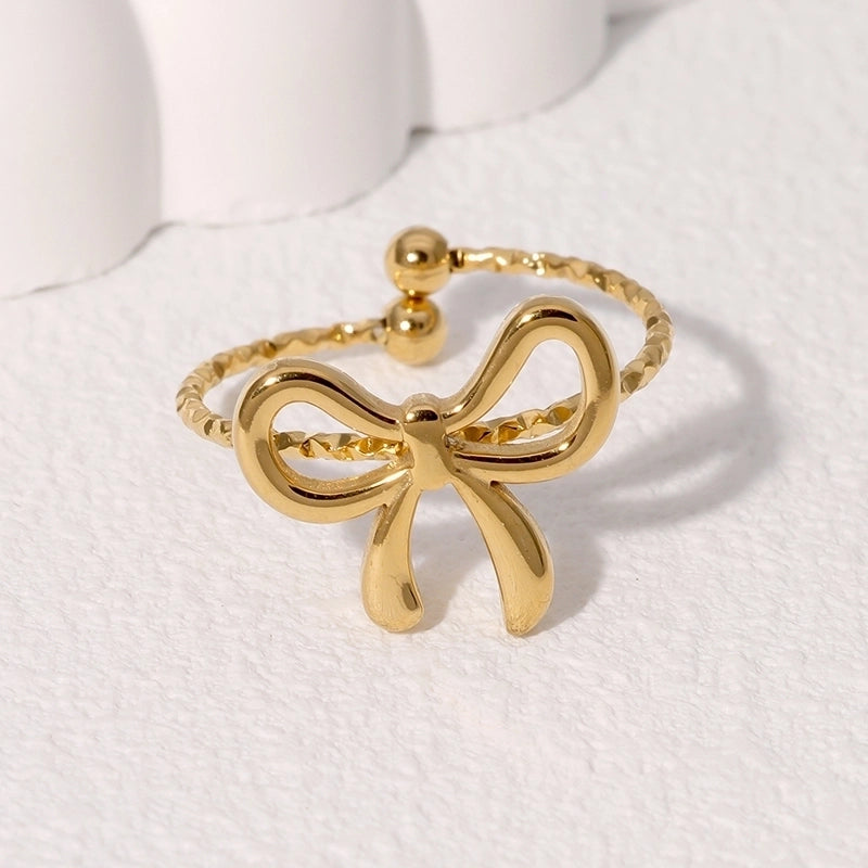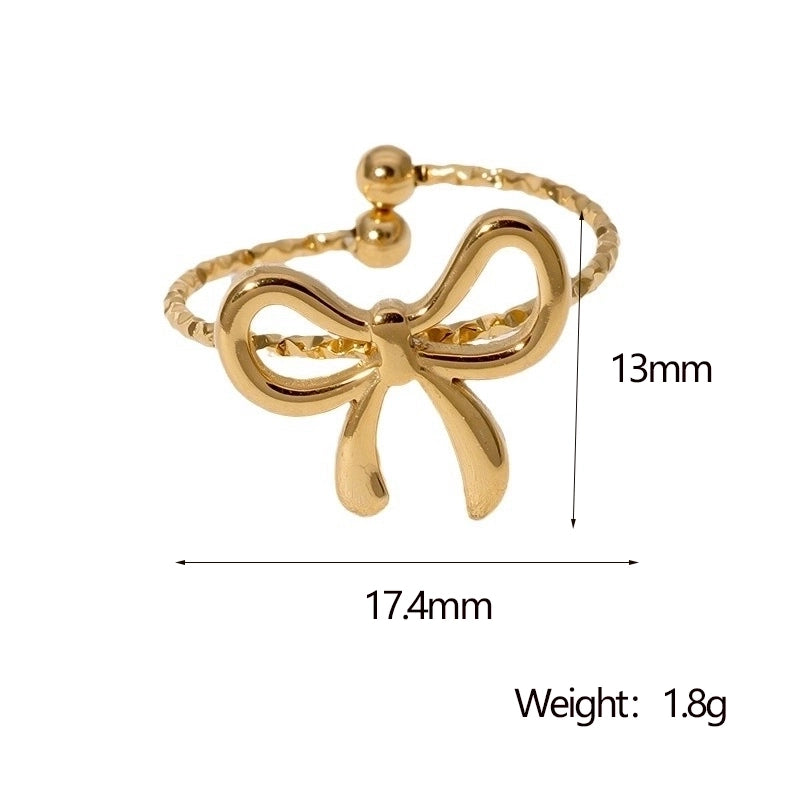 IG Style Minimalist Bow Knot 304 Stainless Steel 18K Gold Plated Open Rings