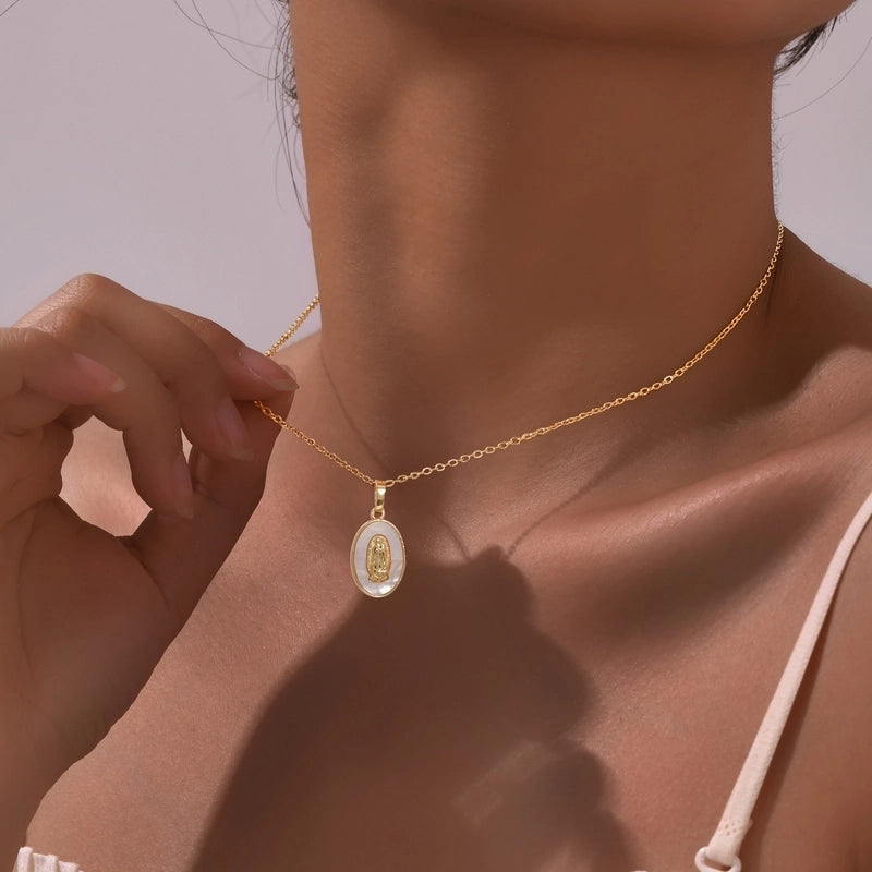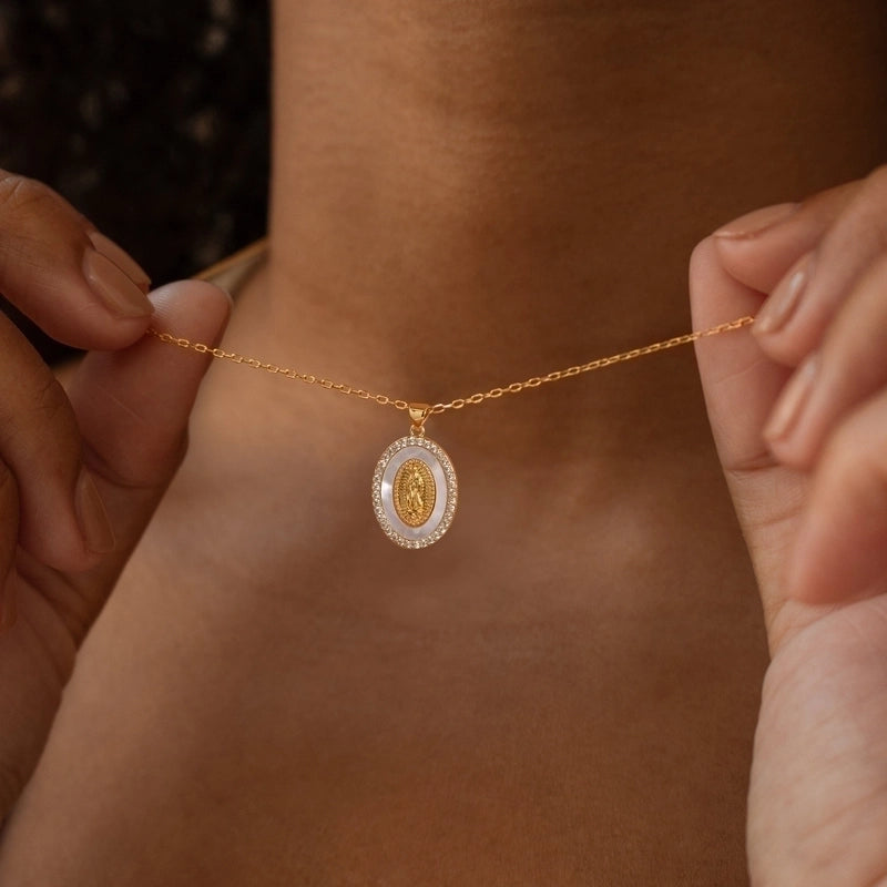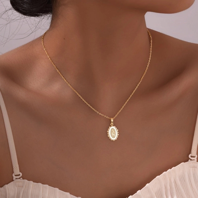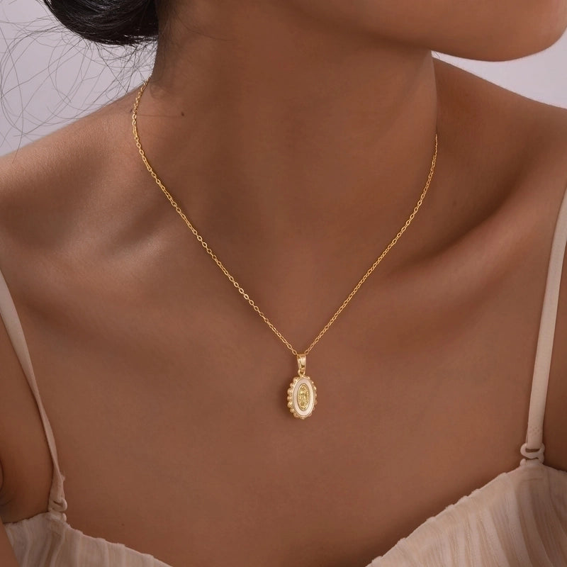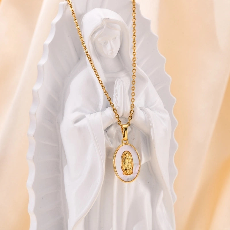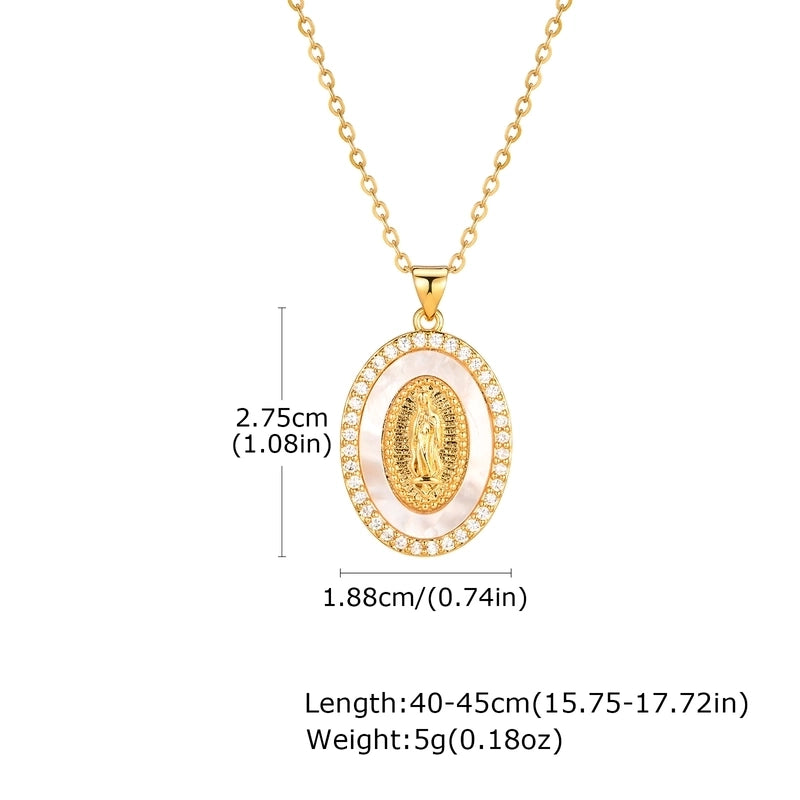 IG Style Portrait Virgin Mary 201 Stainless Steel Shell Zircon 18K Gold Plated Inlay Pendant Necklace