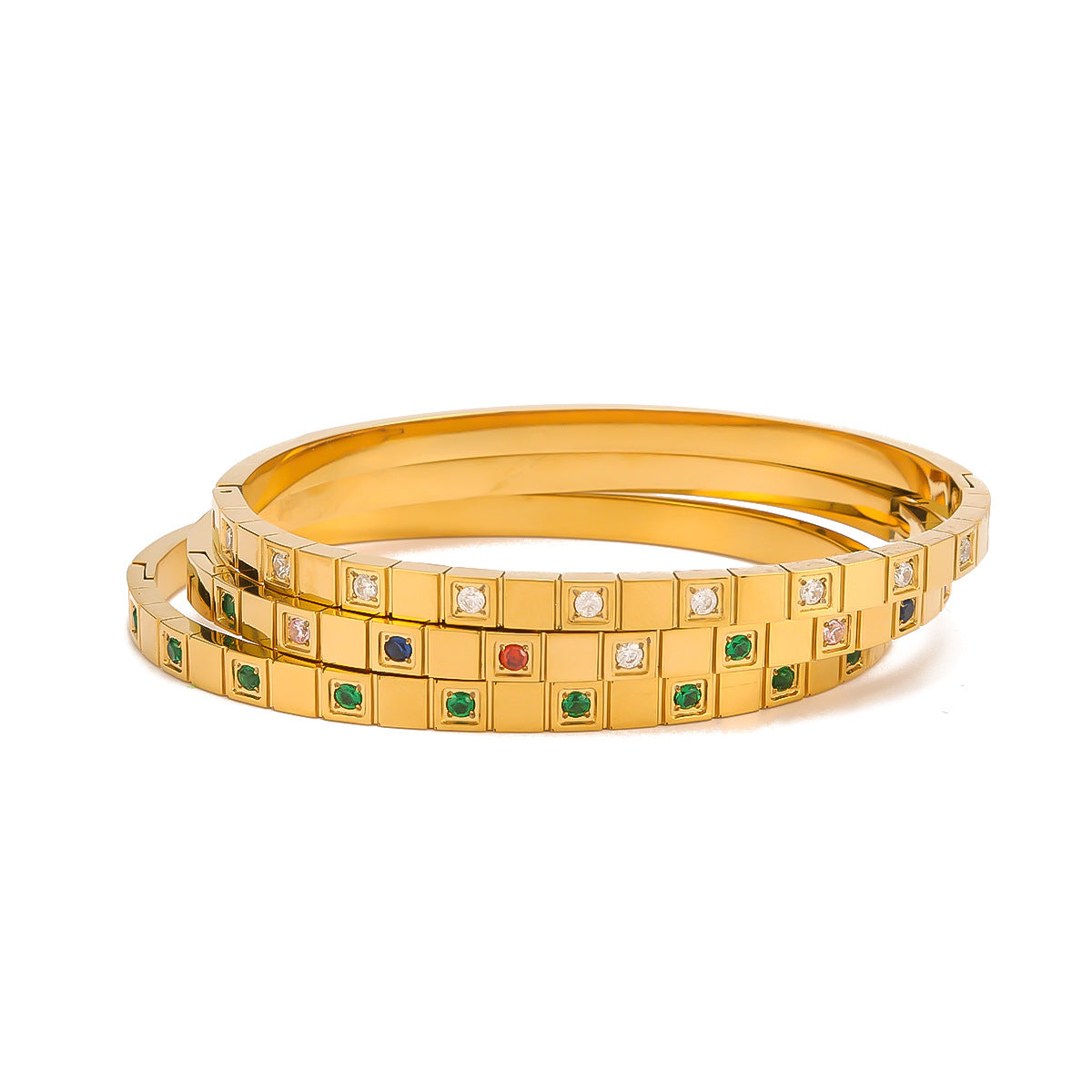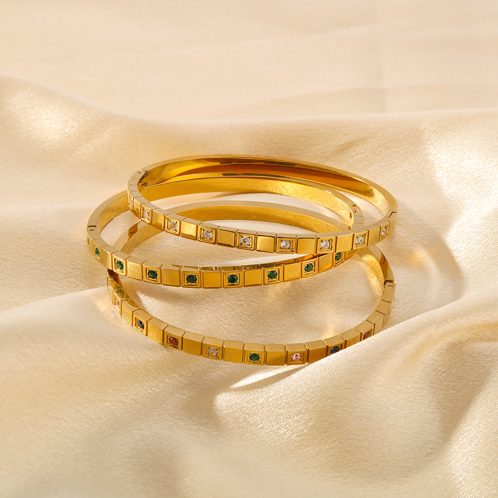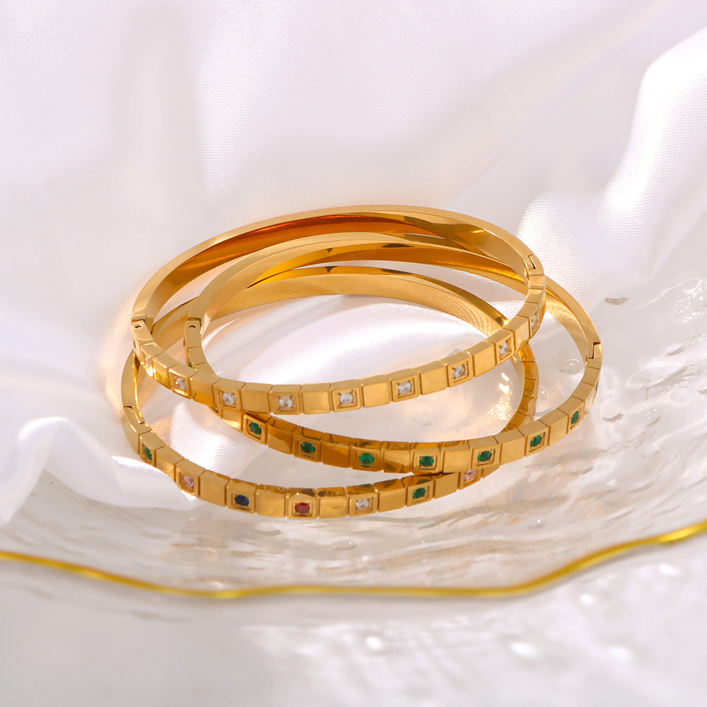 IG Style Quadrilateral Round Stainless Steel Electroplating Bangles