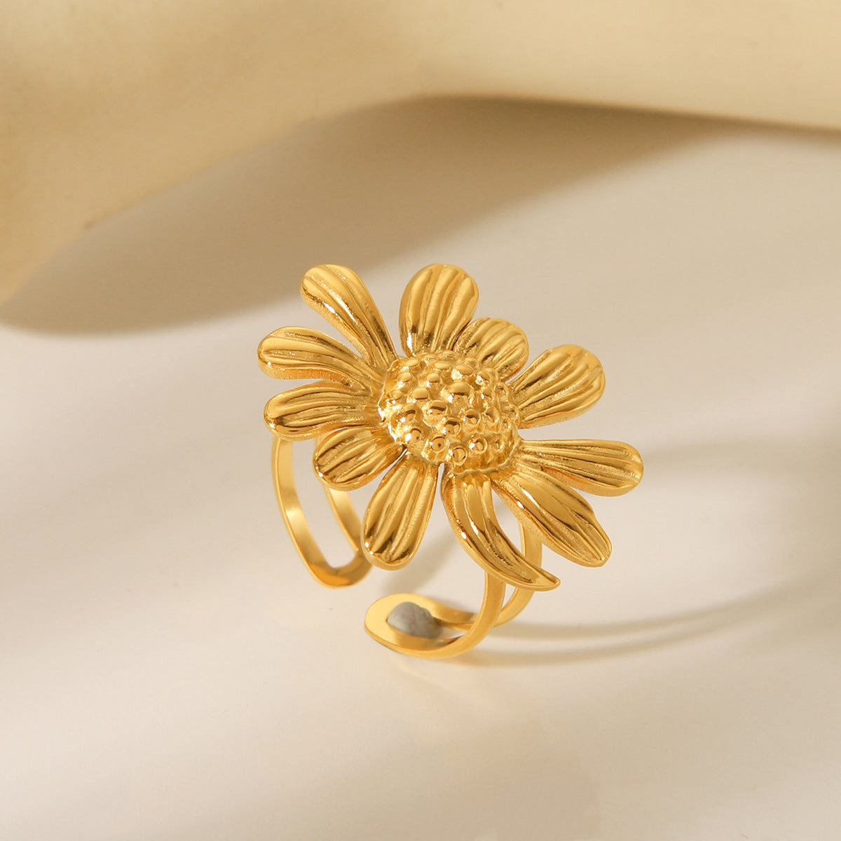 IG Style Ring Little Daisy Flower Geometric Stainless Steel Electroplating Rings