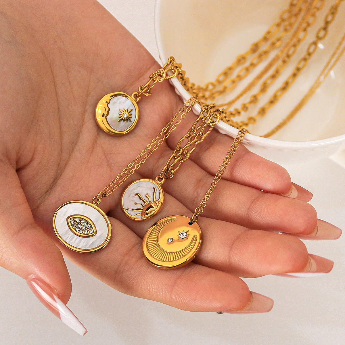 IG Style Round Geometric Stainless Steel Electroplating Necklaces