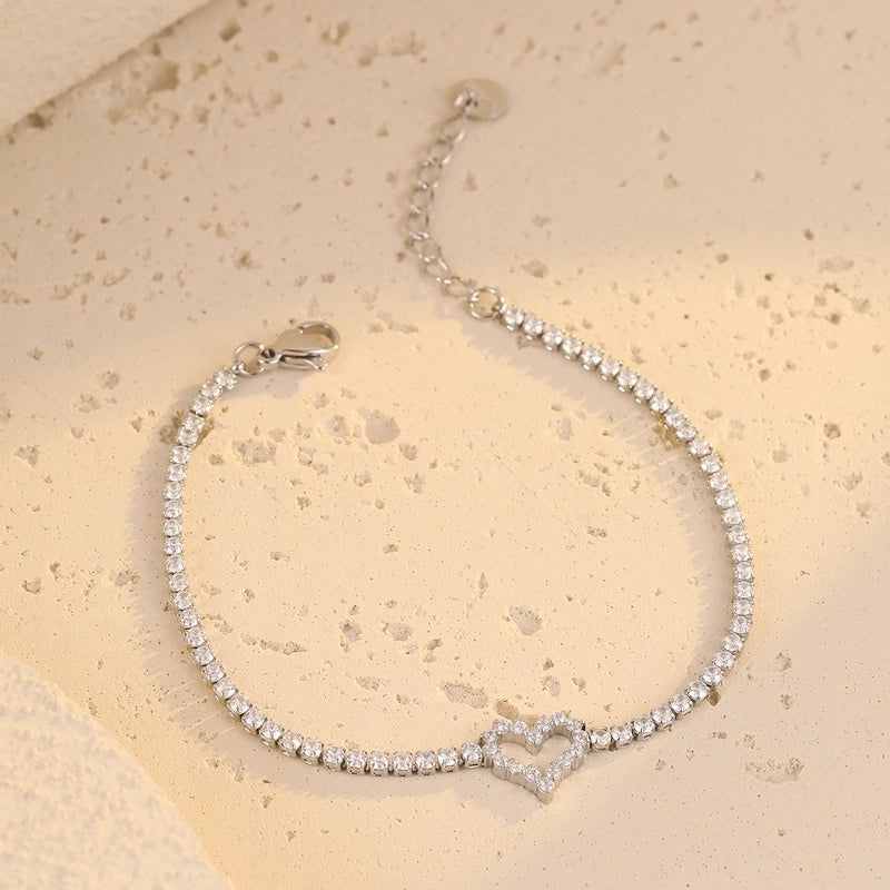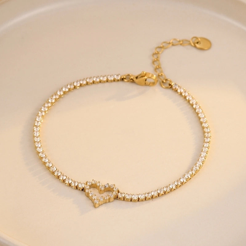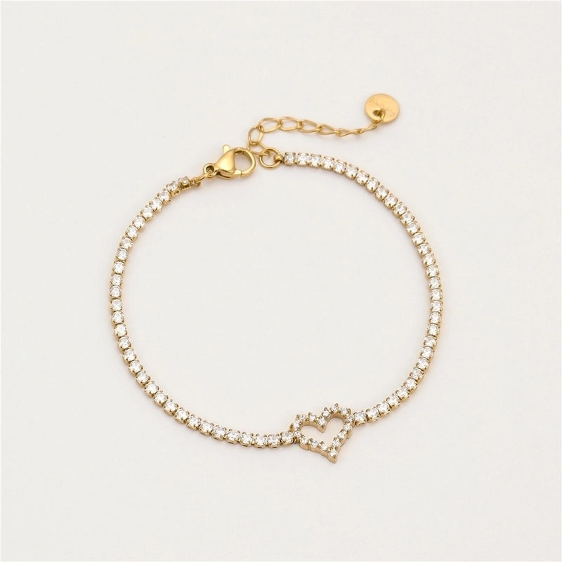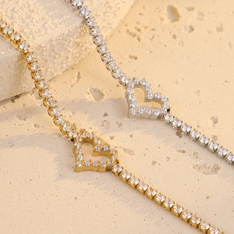 IG Style Shiny Heart 304 Stainless Steel 18K Gold Plated Zircon Tennis Chain Bracelets In Bulk