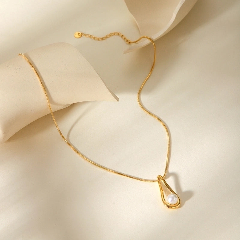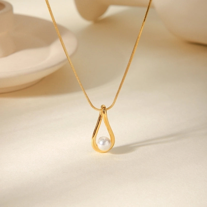 IG Style Shiny Water Droplets 304 Stainless Steel Titanium Steel 18K Gold Plated Pendant Necklace