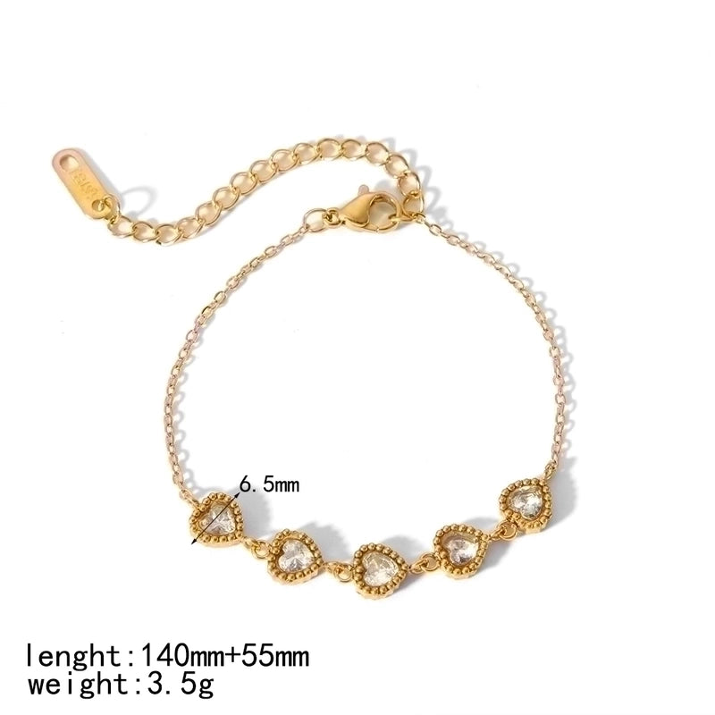 IG Style Minimalist Quadrilateral Round Heart Shape 304 Stainless Steel 18K Gold Plated Zircon Bracelets In Bulk