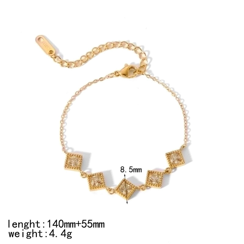 Be the first to review “IG Style Minimalist Quadrilateral Round Heart Shape 304 Stainless Steel 18K Gold Plated Zircon Bracelets In Bulk” Cancel reply