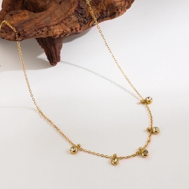 Ig Style Minimalist Round Flower Stainless Steel Plating Inlay Zircon Gold Plated Pendant Necklace