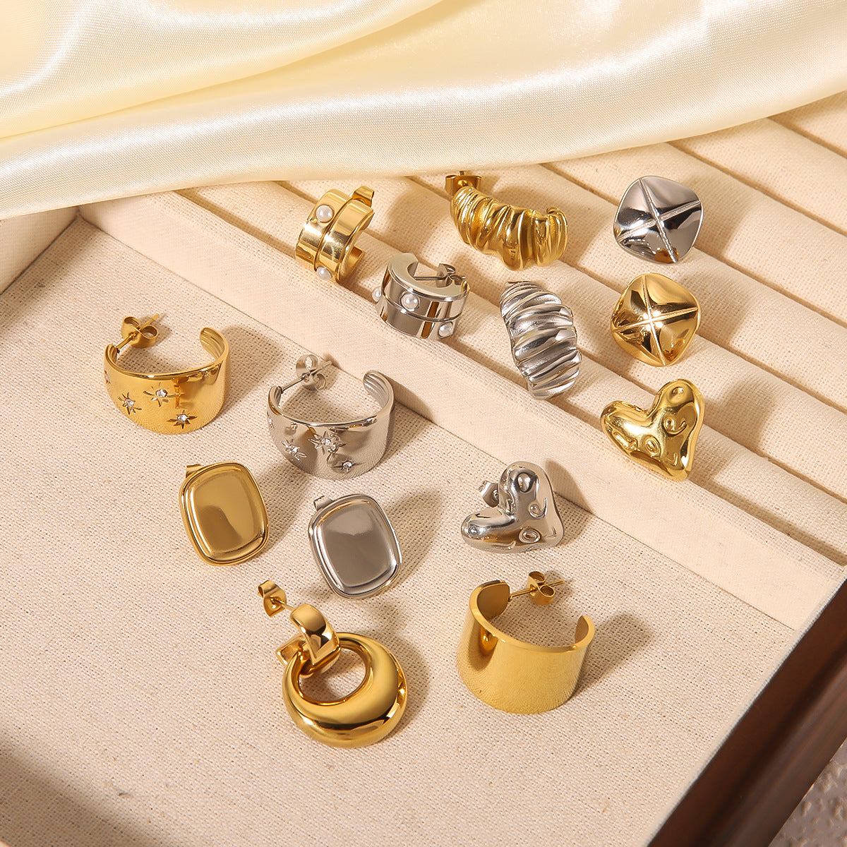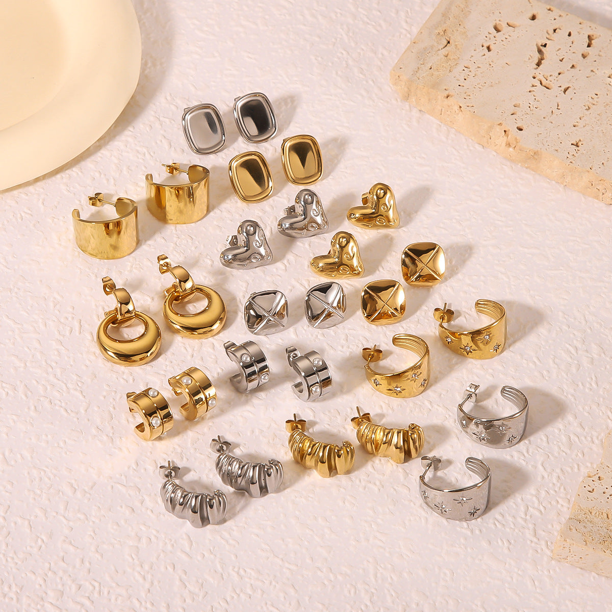 IG Style Square Irregular Heart Heart Geometric Stainless Steel Electroplating Earrings