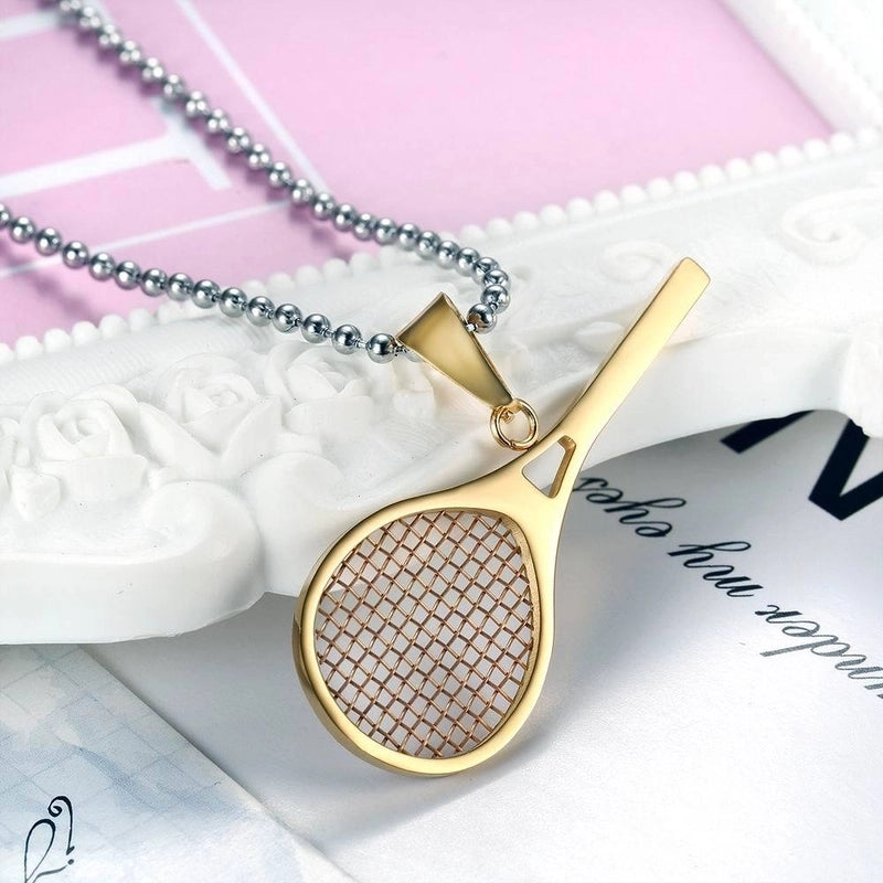 IG Style Tennis Racket Titanium Steel Plating Pendant Necklace Ball Chain