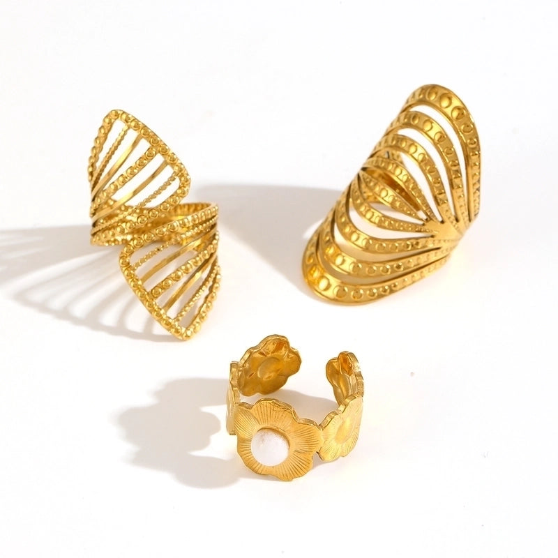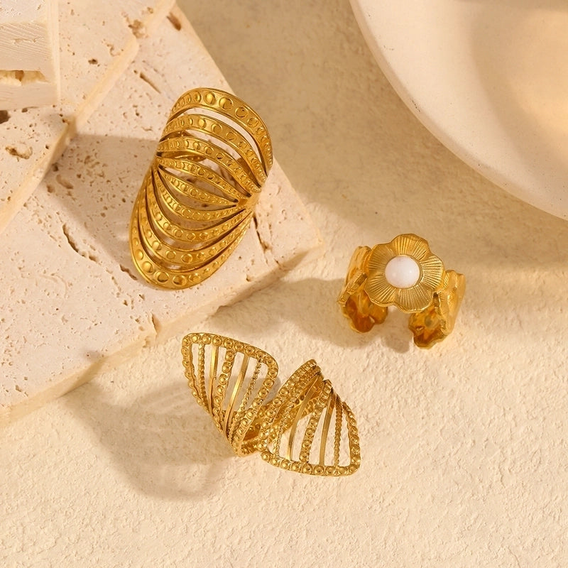 Be the first to review “IG Style Vintage Style Exaggerated Geometric Flower 304 Stainless Steel 18K Gold Plated Rings” Cancel reply