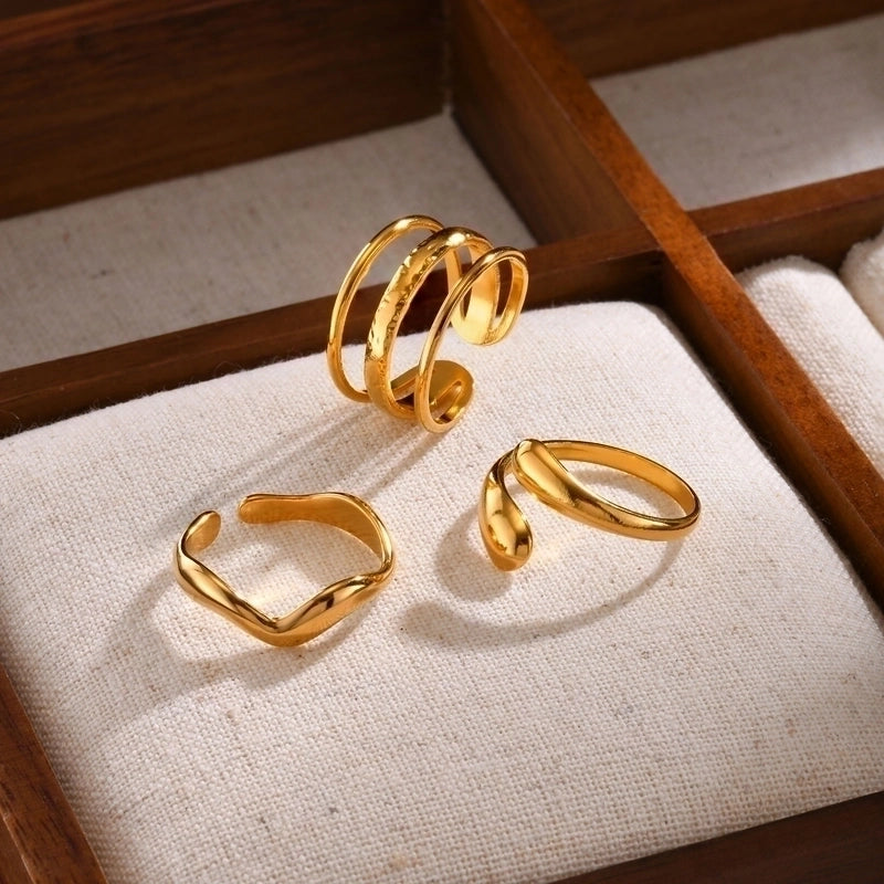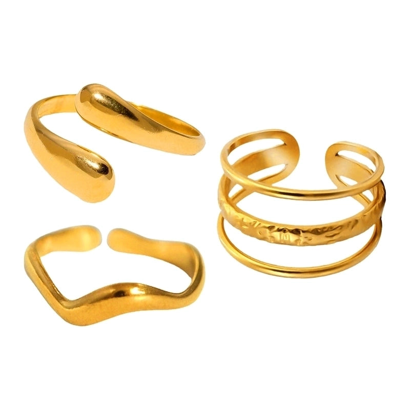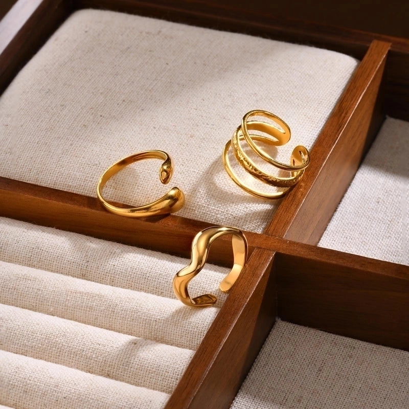 Be the first to review “IG Style Water Droplets Waves 201 Stainless Steel 18K Gold Plated Open Rings” Cancel reply