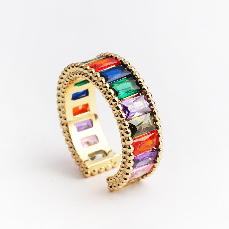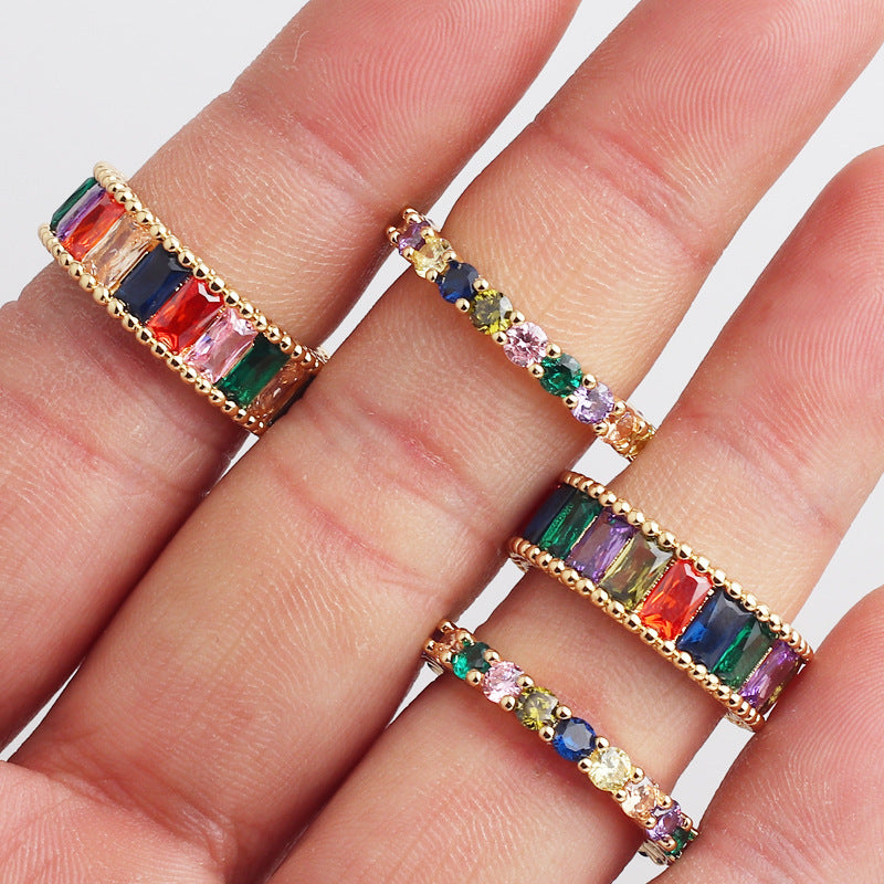 IG Style Women Diamond Metal Rainbow Geometric Rings