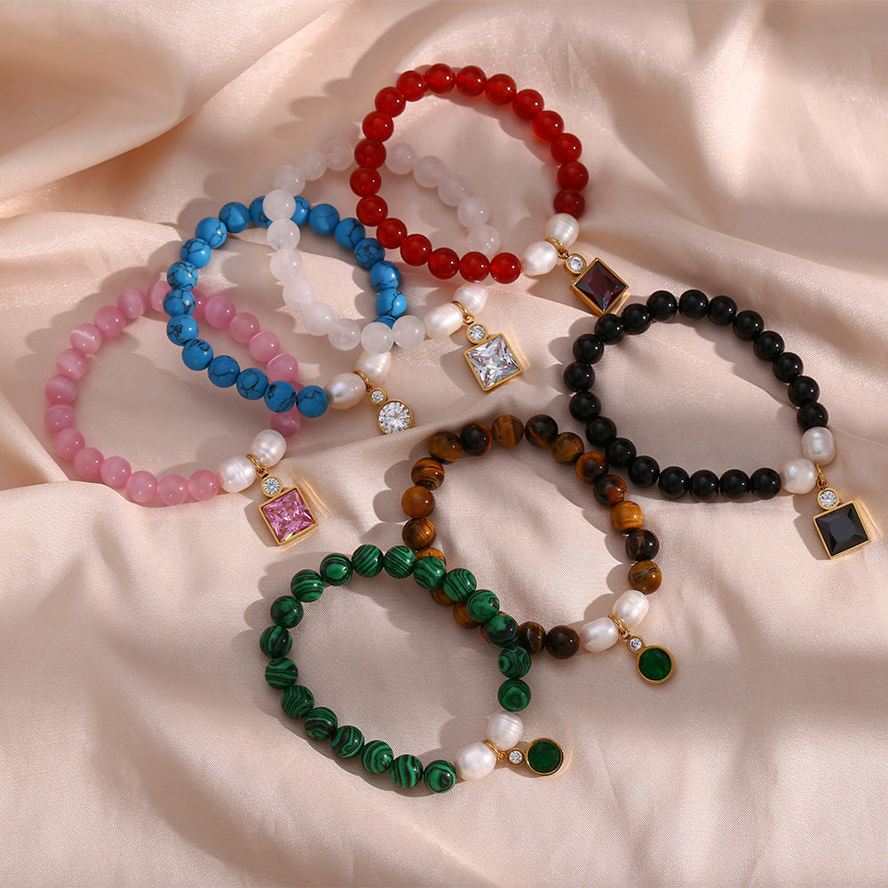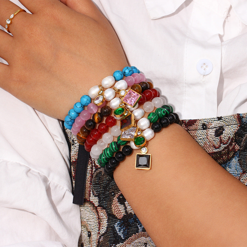 IG Style Women Round Geometric Natural Stone Electroplating Bracelets