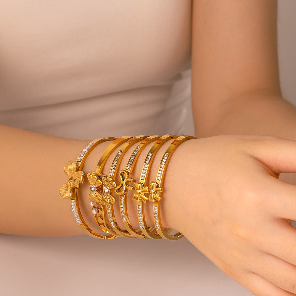 IG Style Zircon Heart Bowknot Stainless Steel Electroplating Bangles