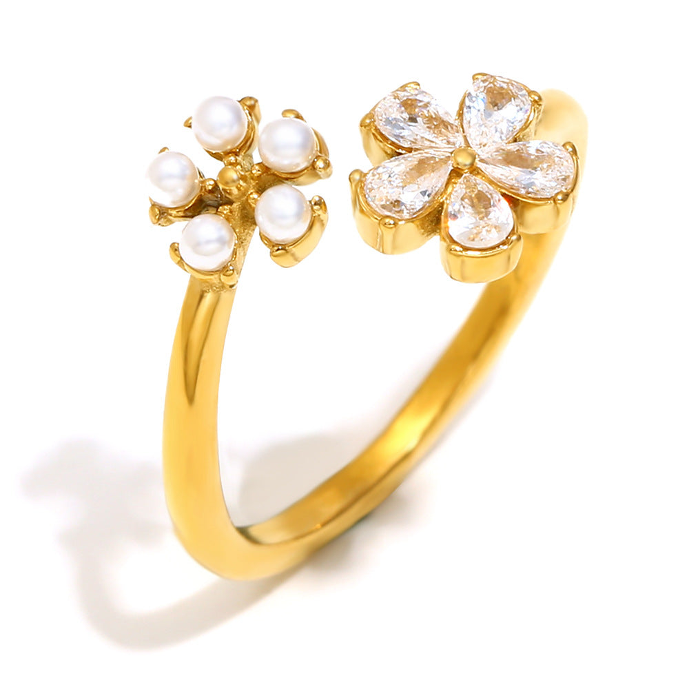 Ins Fashion Niche Design High-End Hand Jewelry Stainless Steel 18K Gold Plated Flower Open Ring Female