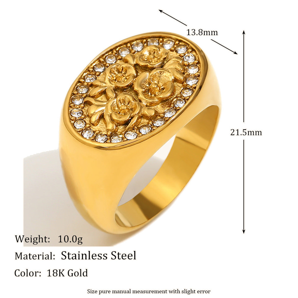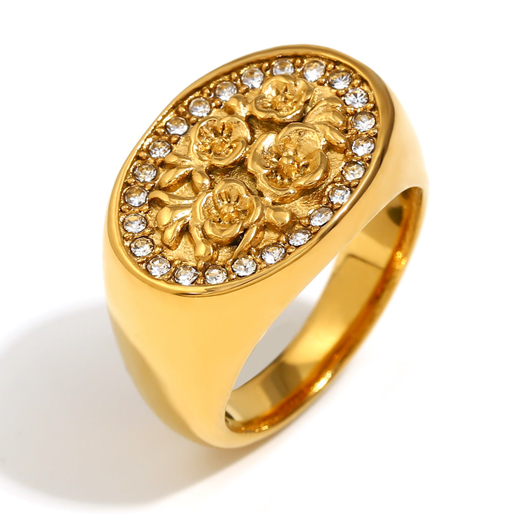 Ins Fashion Retro Niche Jewelry Stainless Steel Plated 18K Gold Seal Flower Ring Female