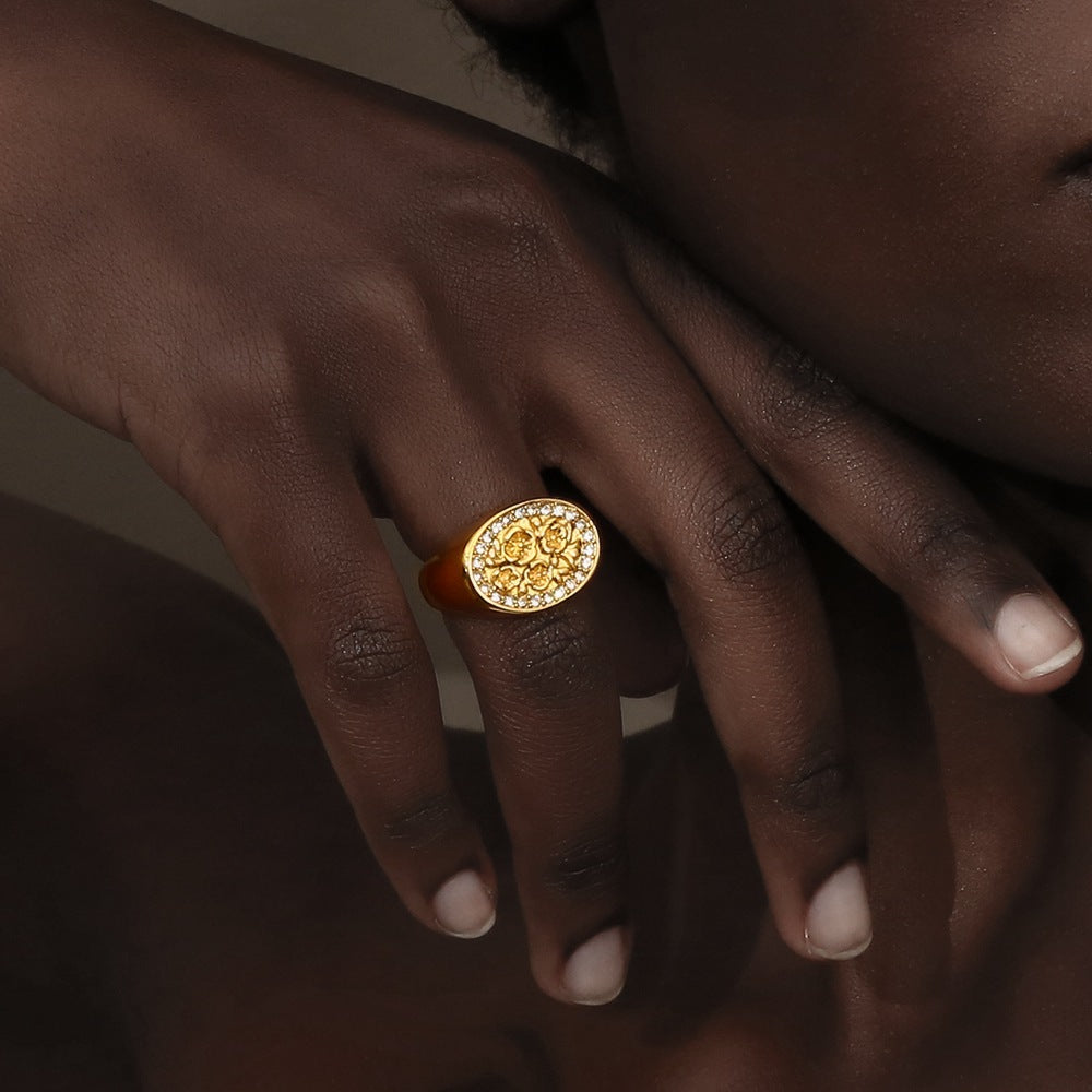 Be the first to review “Ins Fashion Retro Niche Jewelry Stainless Steel Plated 18K Gold Seal Flower Ring Female” Cancel reply
