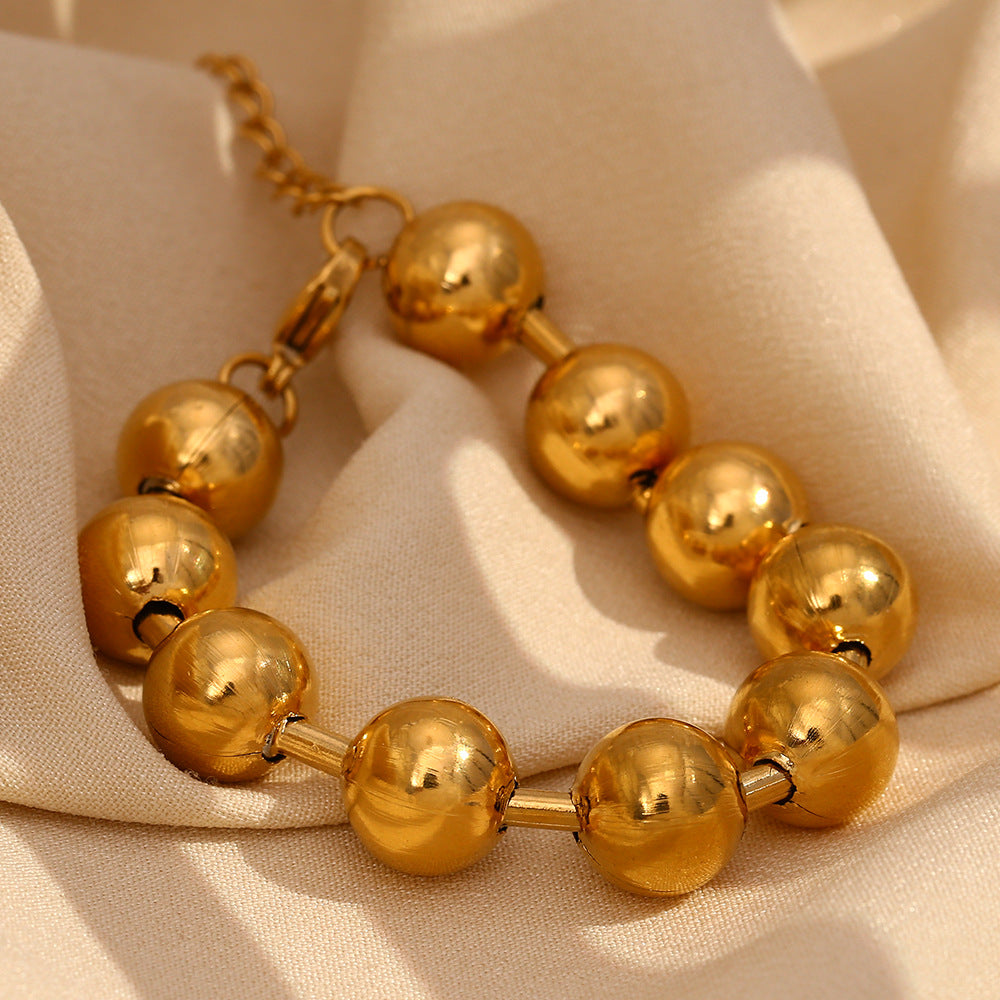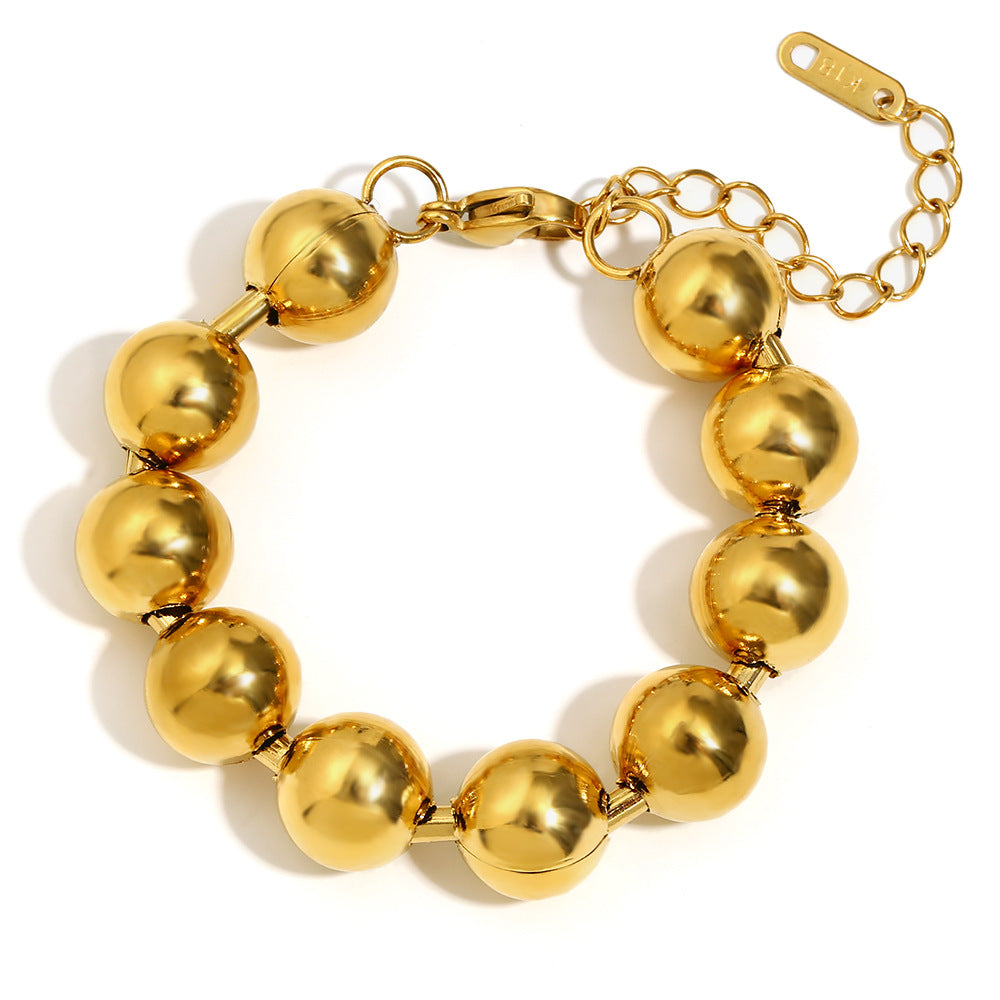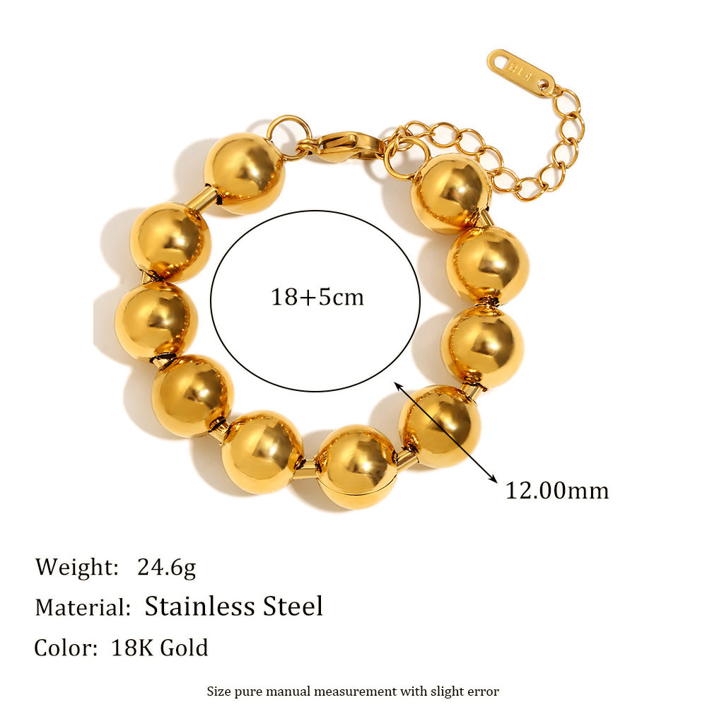 Ins Fashion Simple Niche All-Match French High-End Jewelry Stainless Steel 18K Gold Plated Large Round Bead Bracelet Female