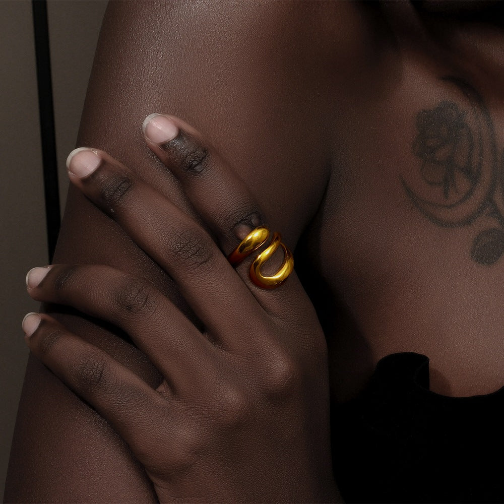 Be the first to review “Ins Personality Niche Design Hand Jewelry Stainless Steel Plated 18K Gold French Three-Layer Open Snake Ring Female” Cancel reply