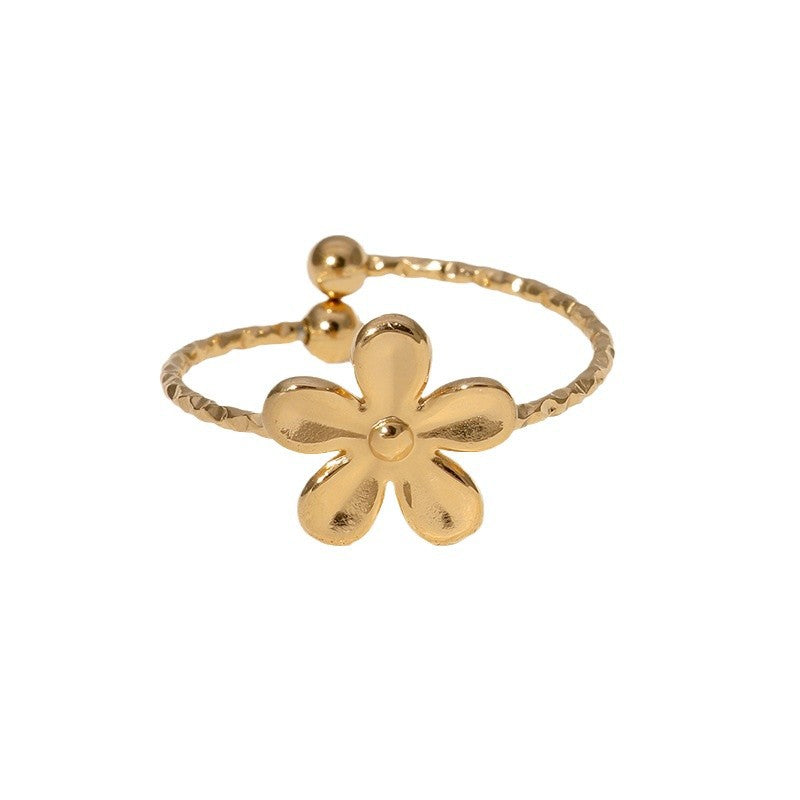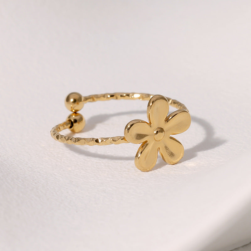Ins Simple And Versatile Fashion Flower Ring Cute Small Fresh Personality Gold-Plated Stainless Steel Open Ring