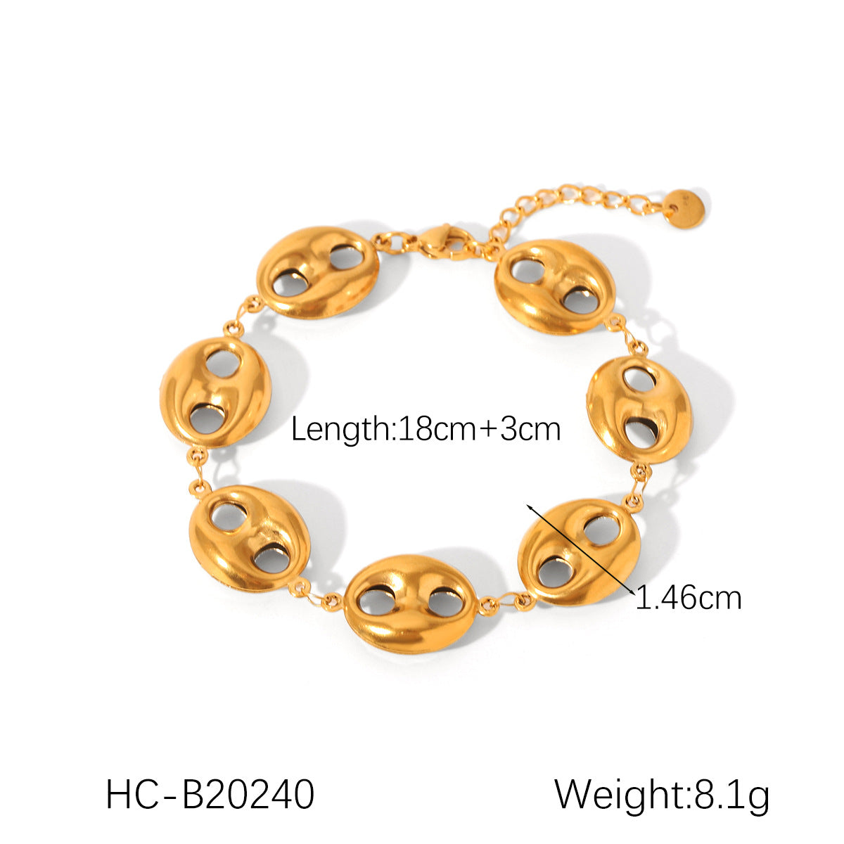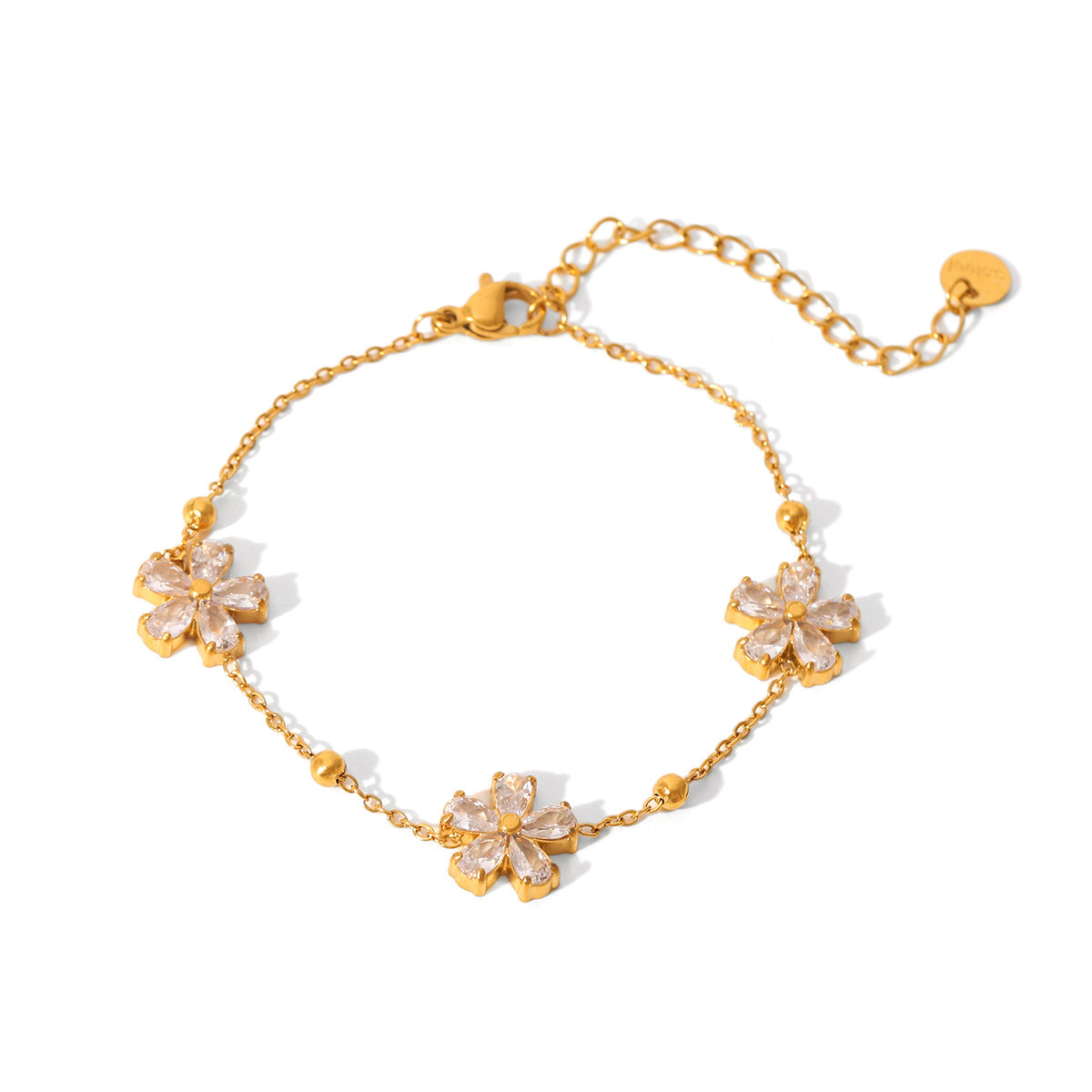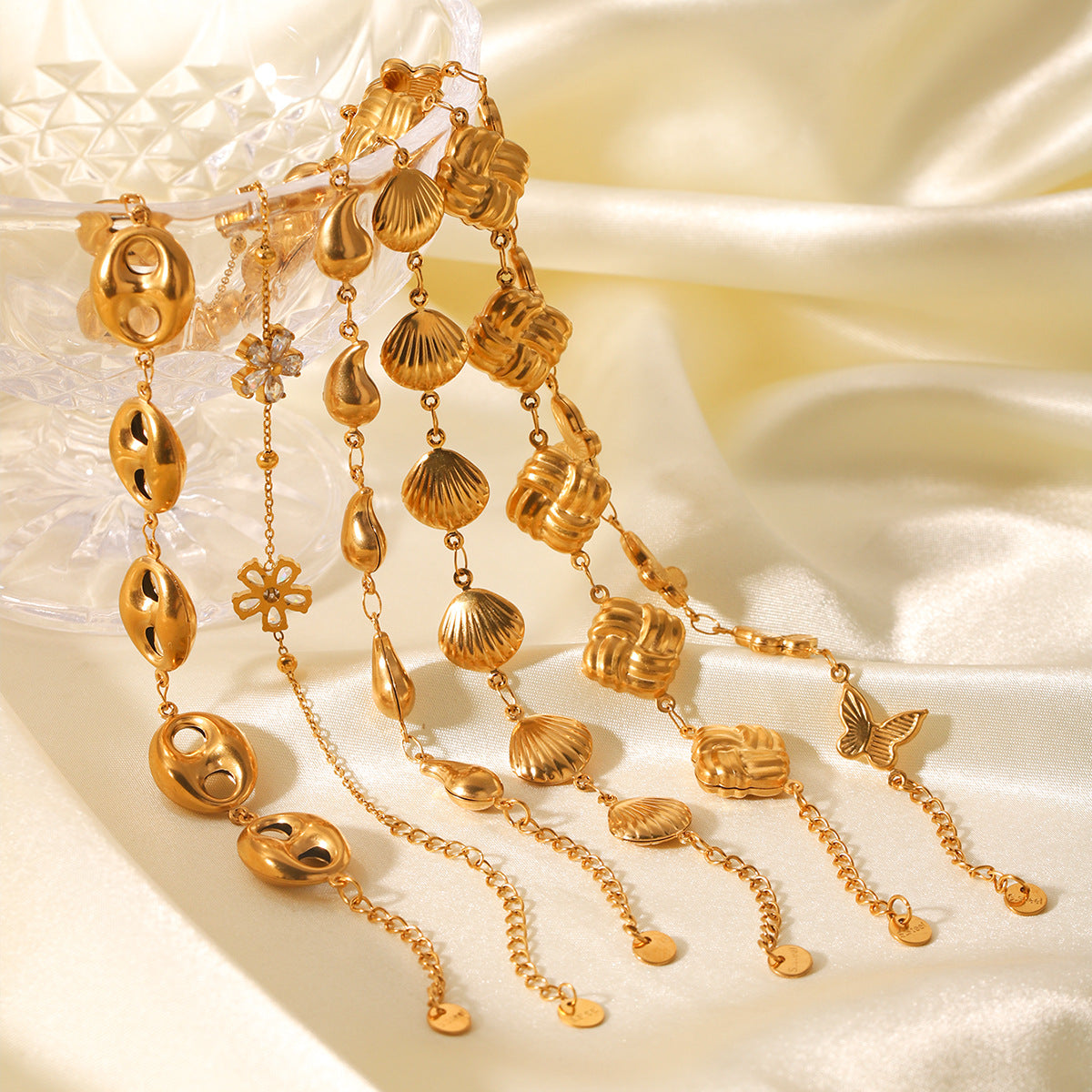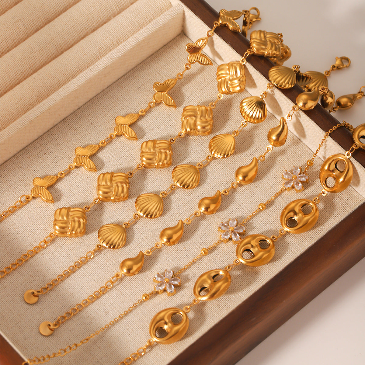 Ins Stainless Steel Bracelet Square Butterfly Shell Water Drop Zircon Flower Pig Nose Buckle 18K Gold Titanium Steel Jewelry