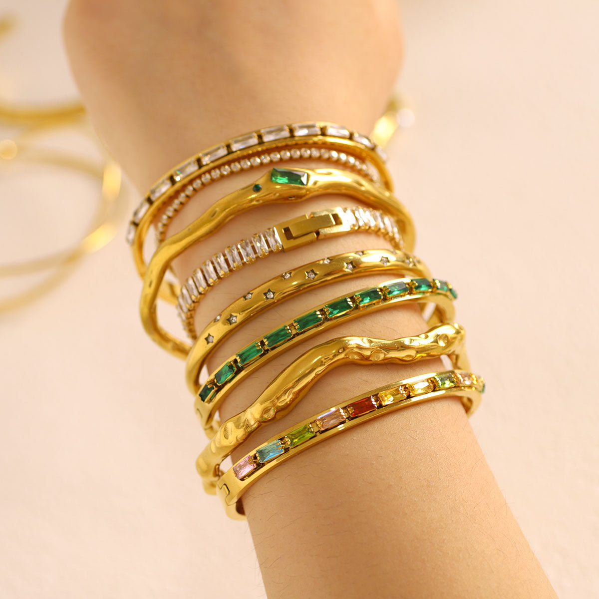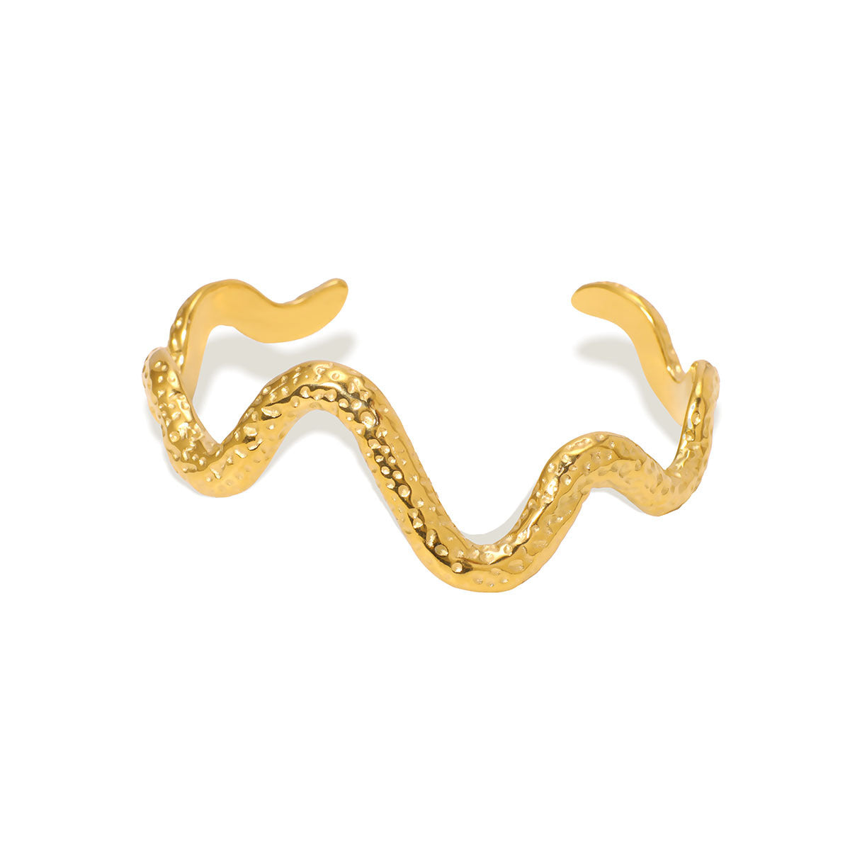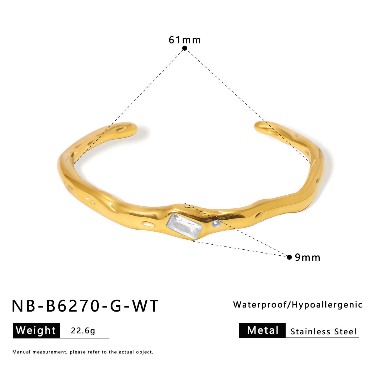 Ins Stainless Steel Zircon Pearl Bracelet C-Shaped Wave Line Open Gold-Plated Bracelet Design Female