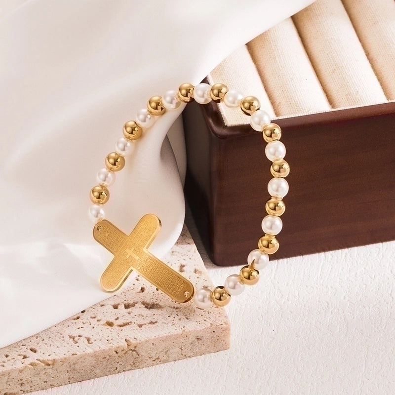 Ins Style Cross Heart Shape Elephant Stainless Steel Imitation Pearl Synthetics Beaded Plating Gold Plated Bracelets