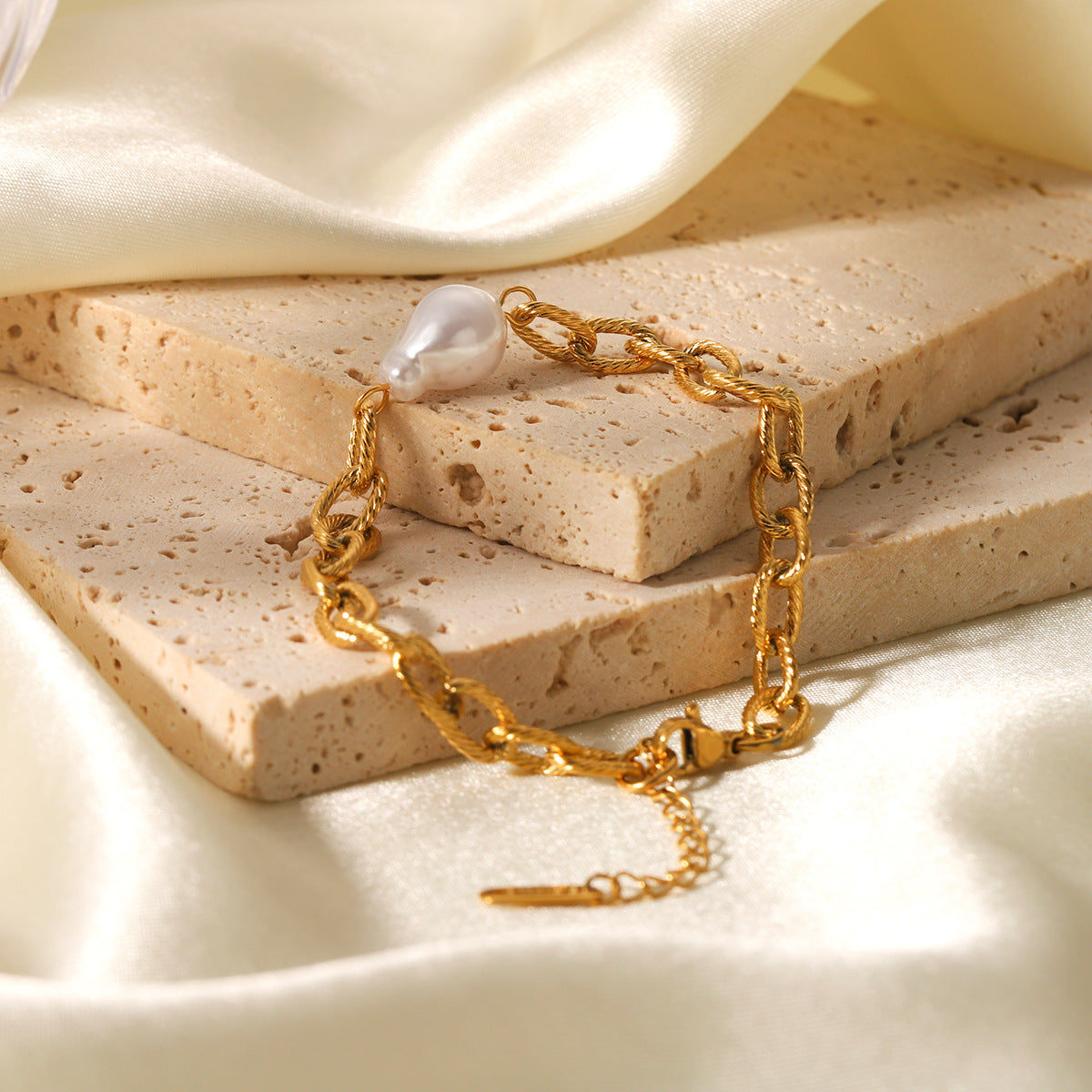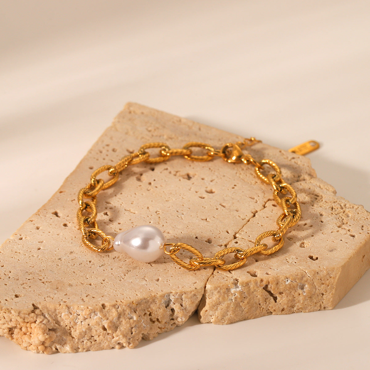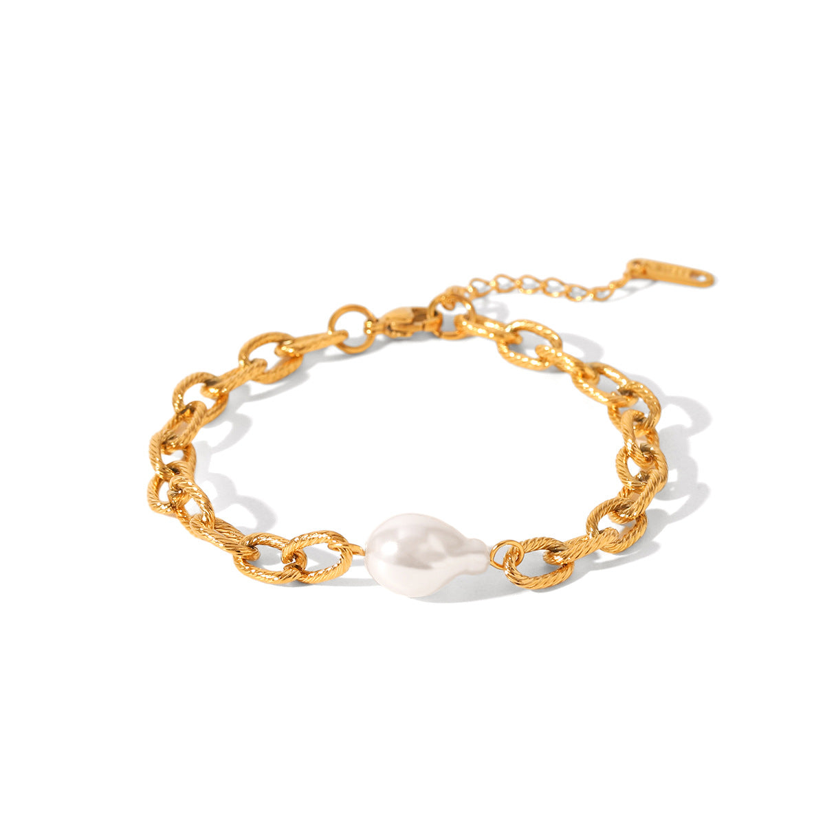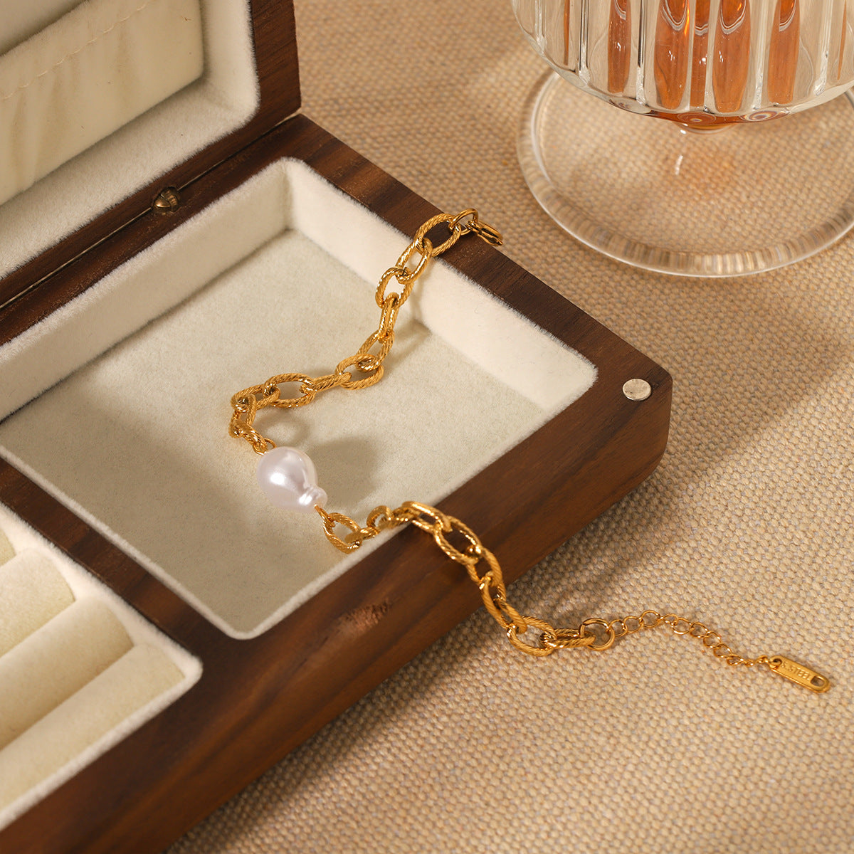 Ins Style Texture O-Shaped Chain Stainless Steel Bracelet Female Special-Shaped Pearl Pendant Hand Jewelry Titanium Steel