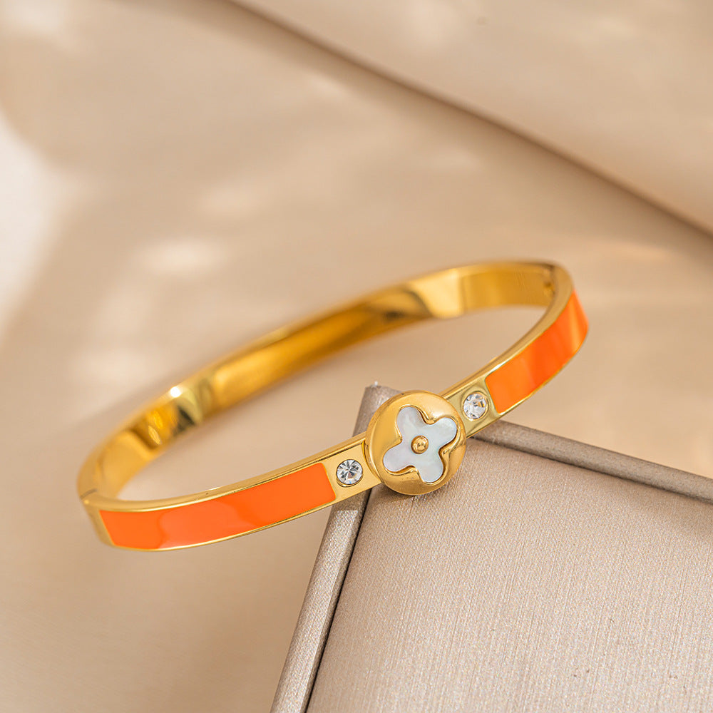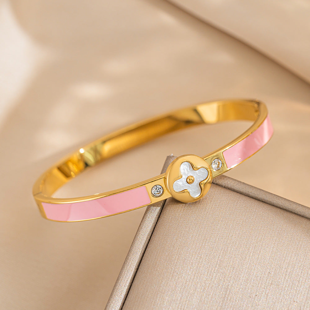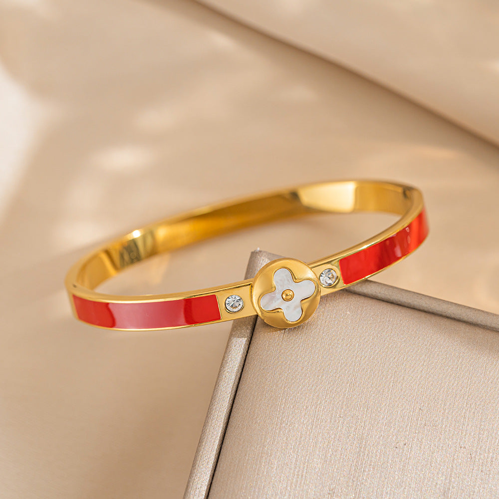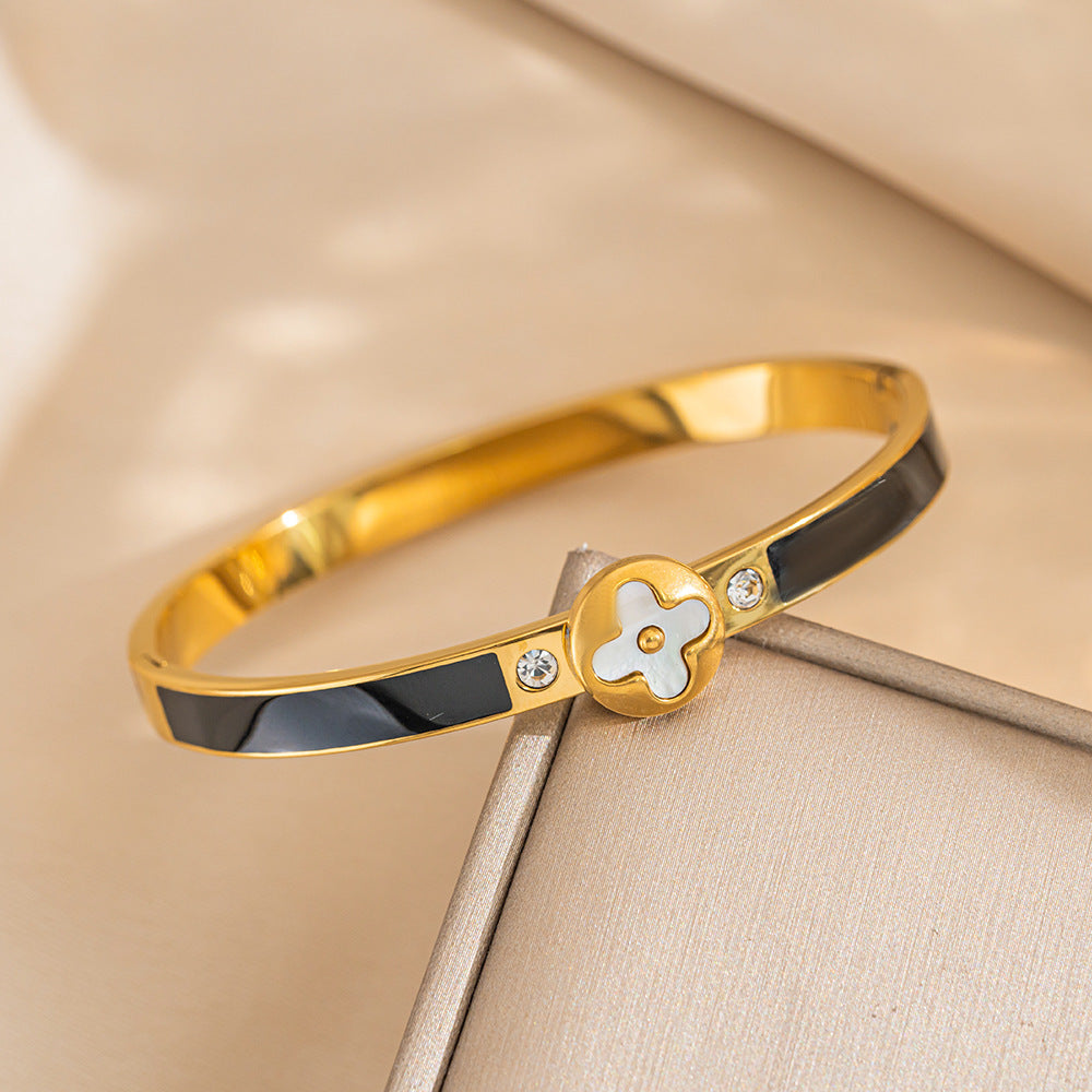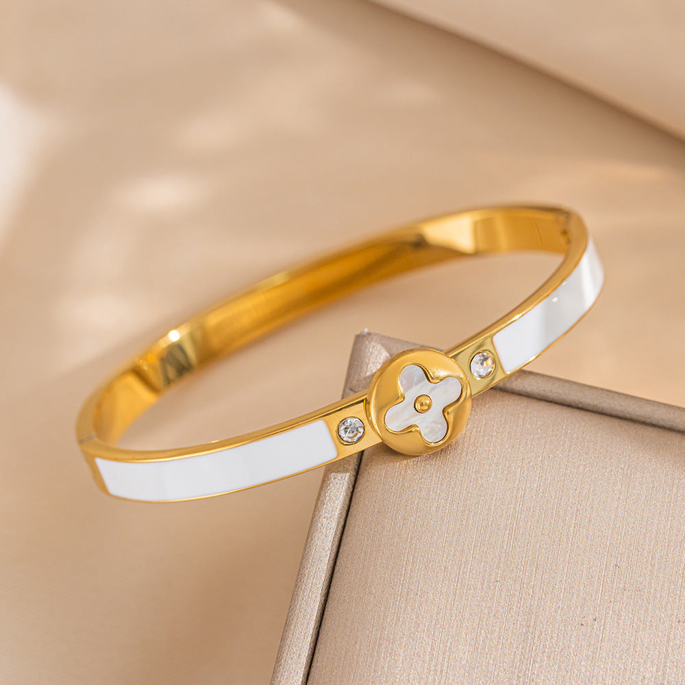 Ins Titanium Steel Bracelet Minimalist Real Mother-Of-Pearl Four-Leaf Clover Stainless Steel Decoration