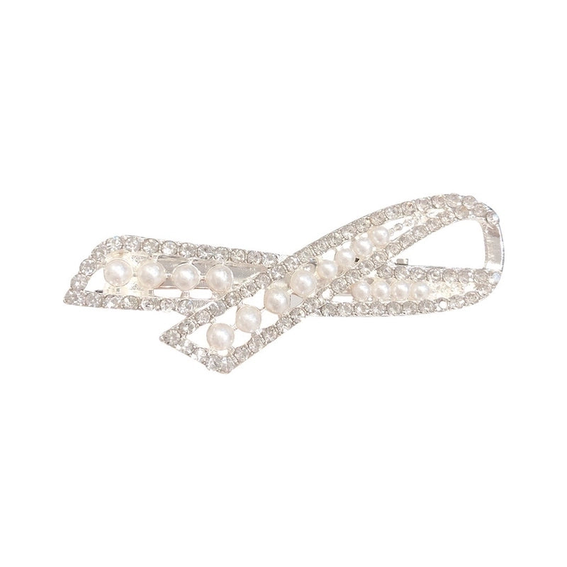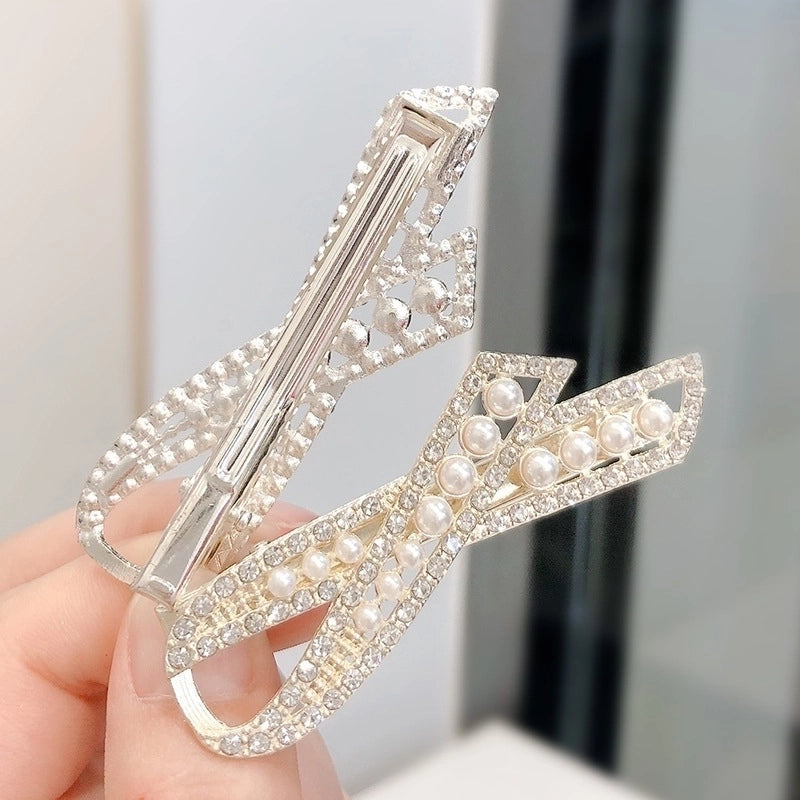 Internet Celebrity Hot Hairpin Girl’s Bow Pearl Crystal Side Clip Elegant Side Duckbill Clip Hair Accessories