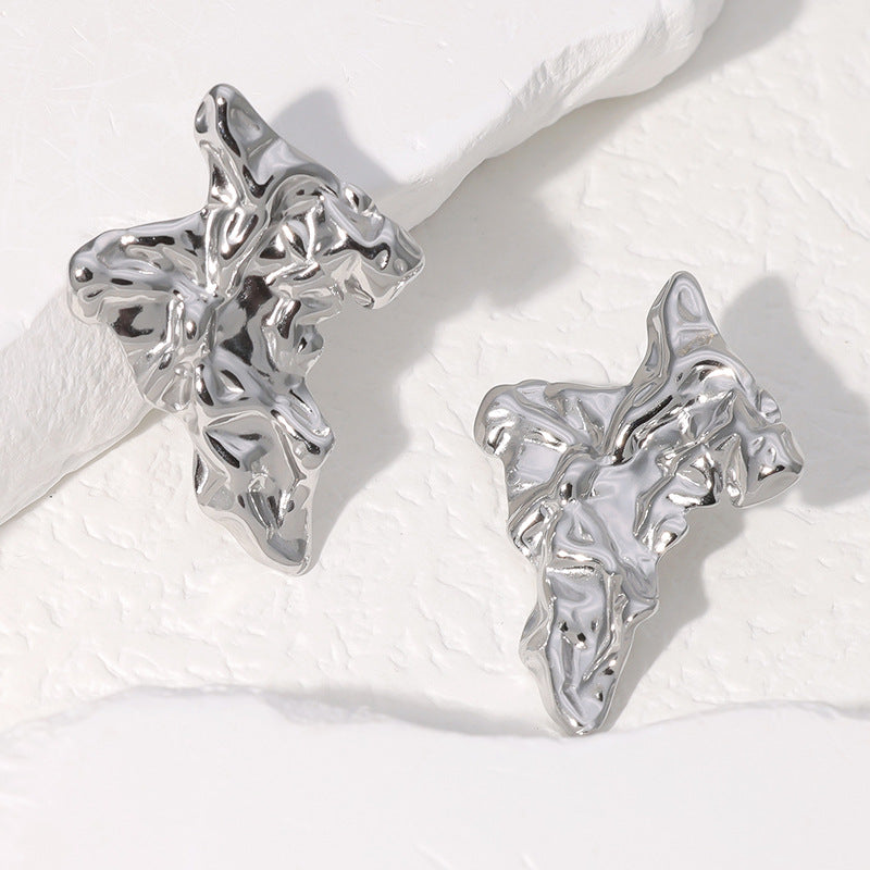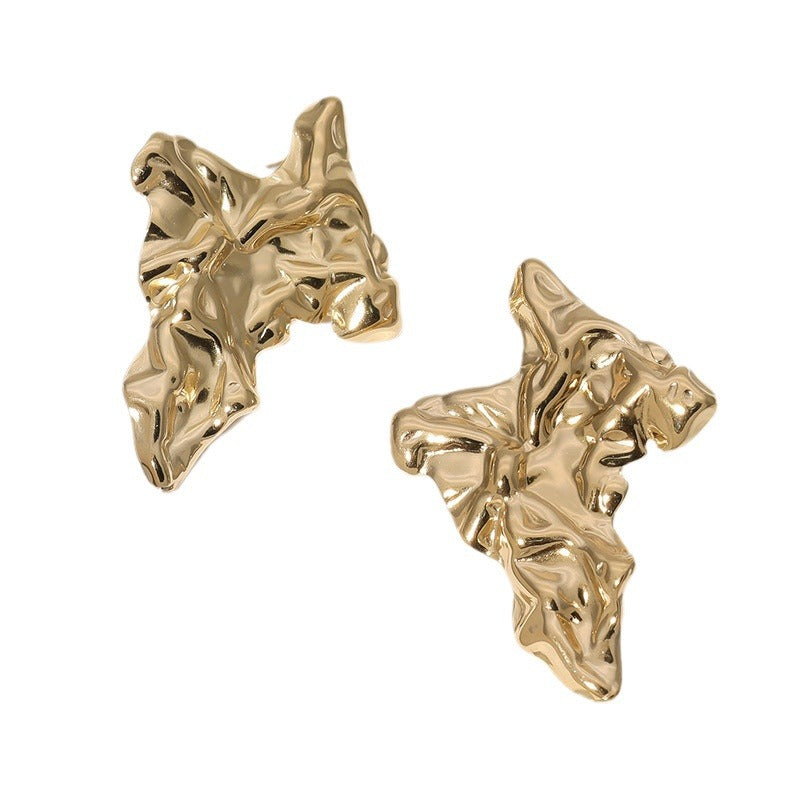 Irregular Pleated Stainless Steel Electroplating Stud Earrings