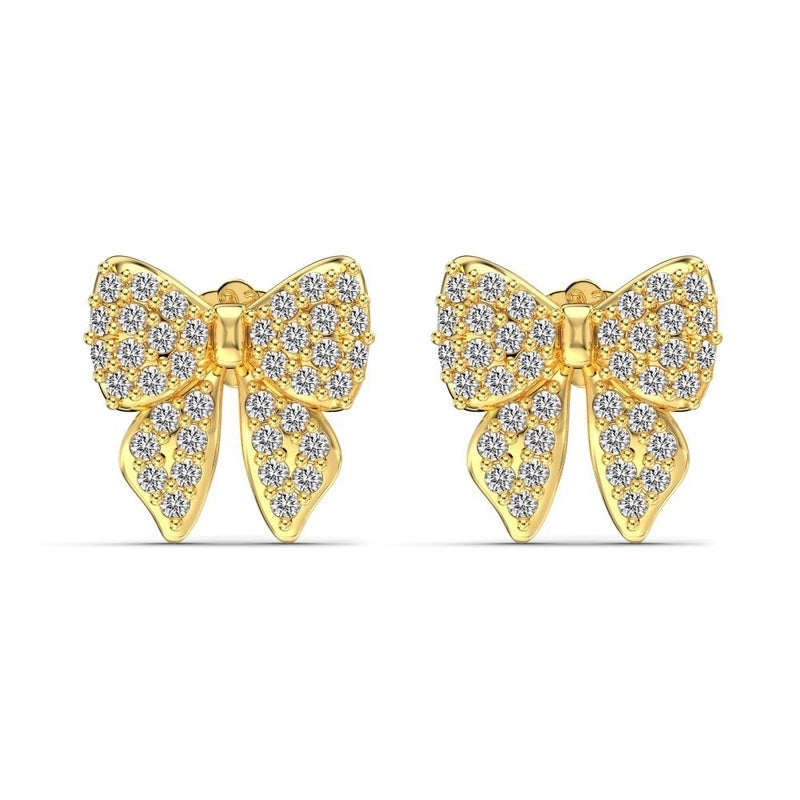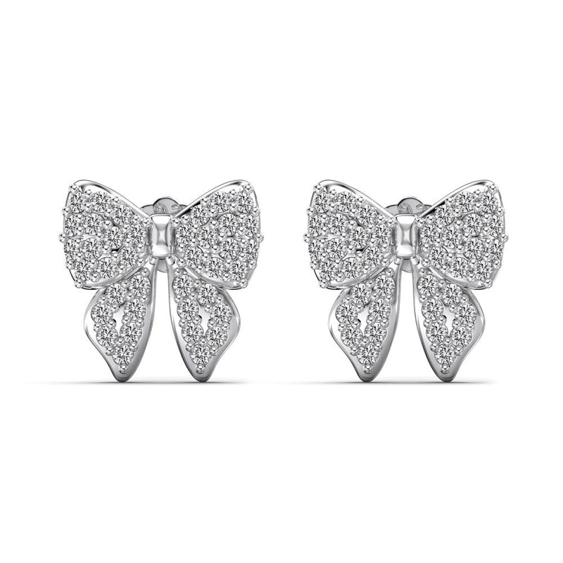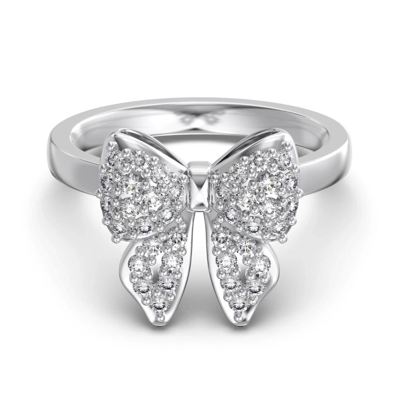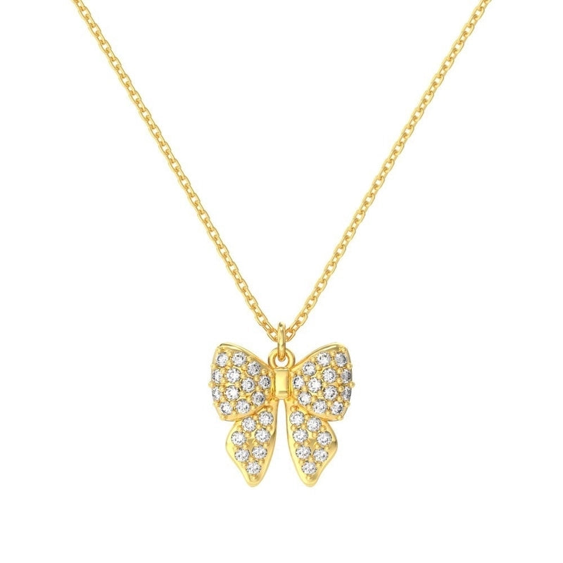 Japanese And Korean High-Grade 925 Sterling Silver Ring Necklace Ear Stud Women’s Exquisite Bow Zircon Inlaid Women’s Jewelry Combination