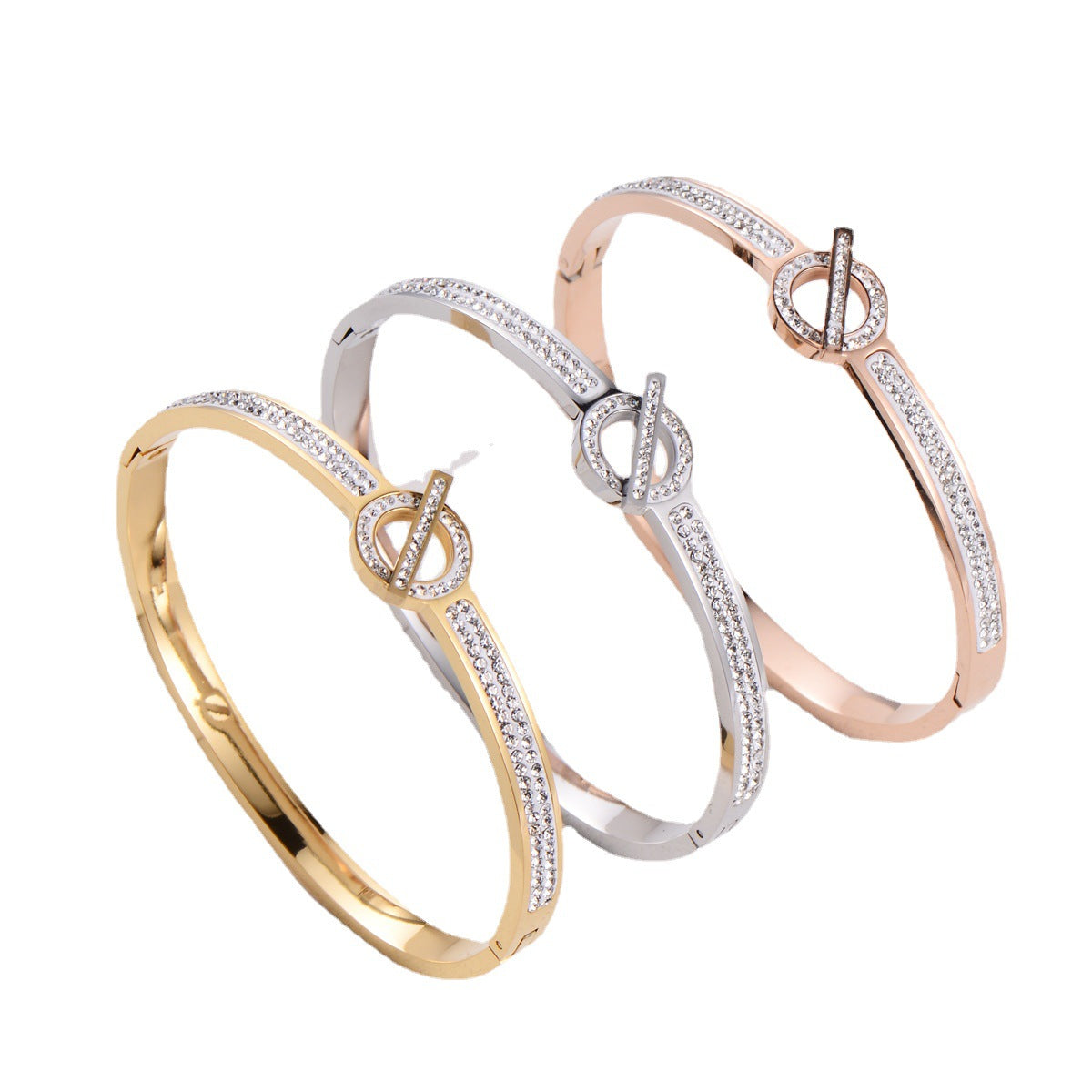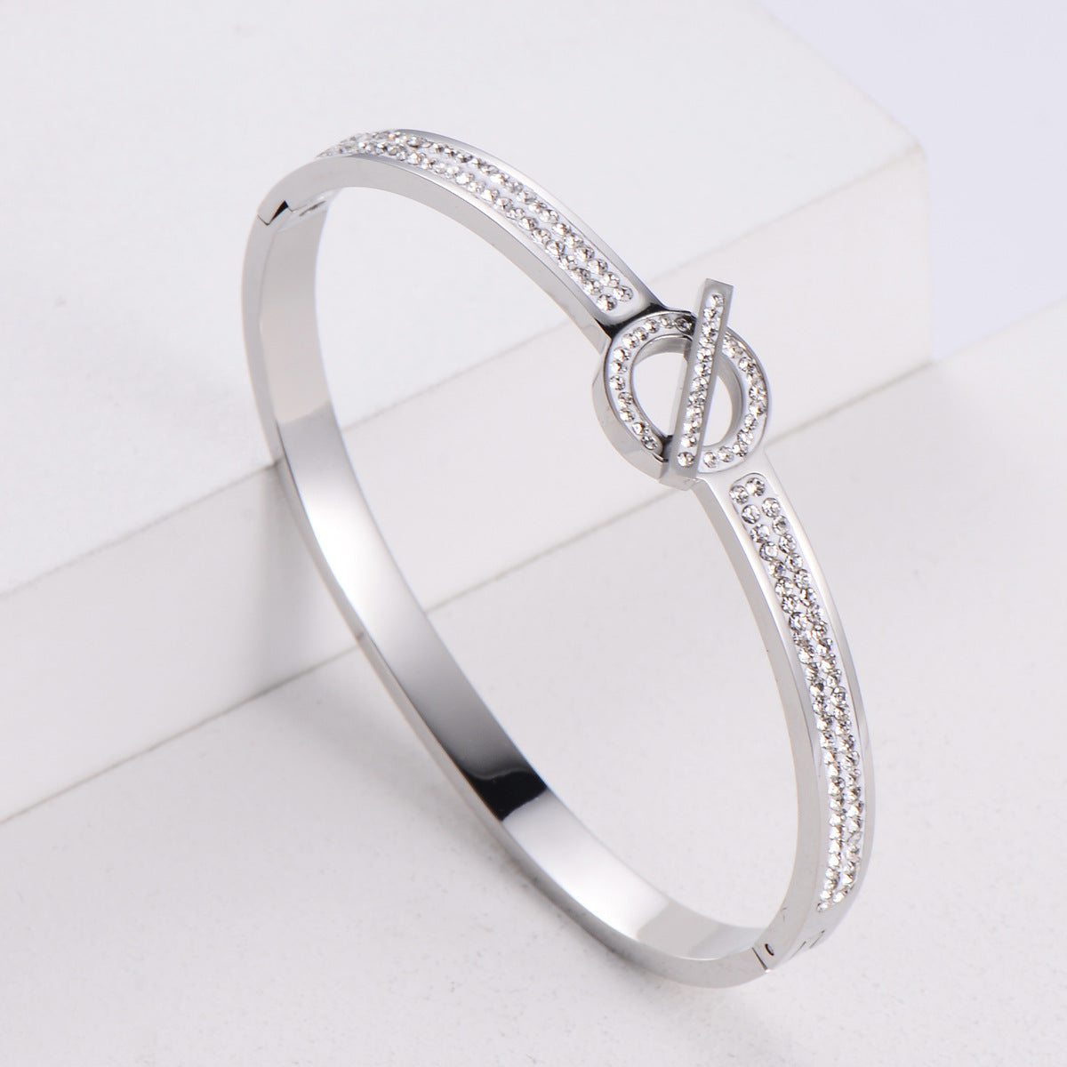 Japanese / Korean Women Diamond Stainless Steel Bangles