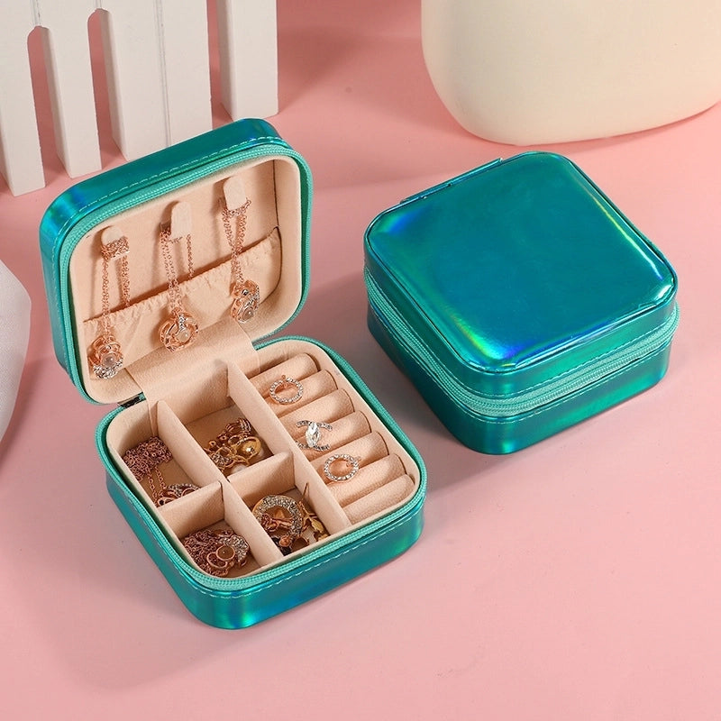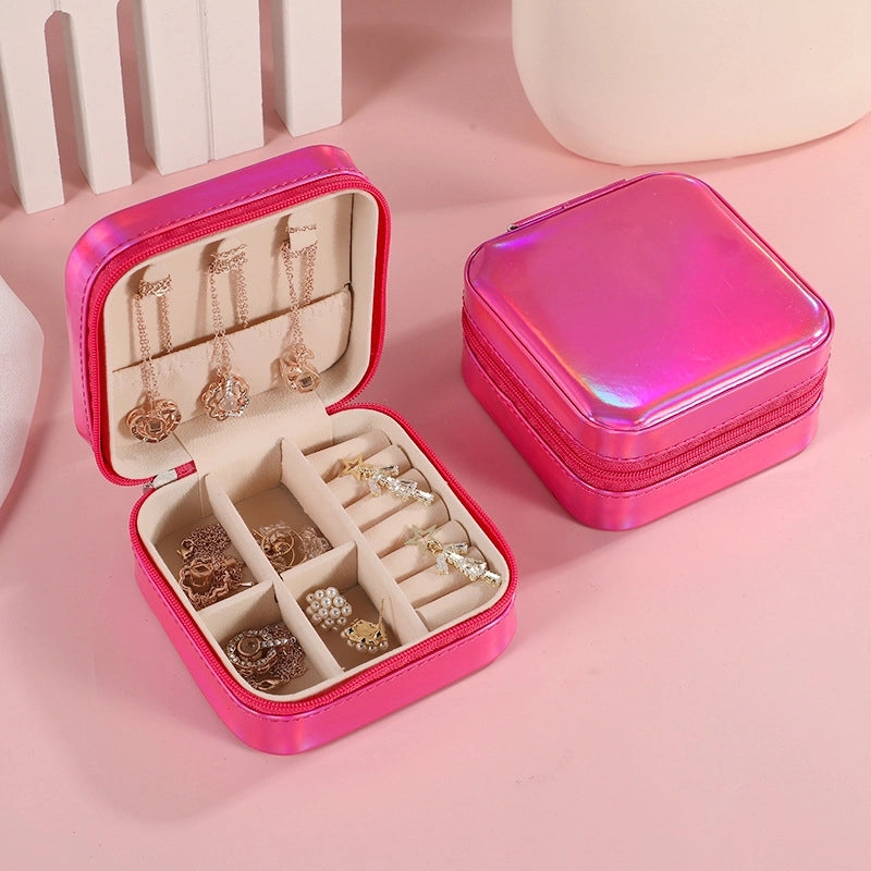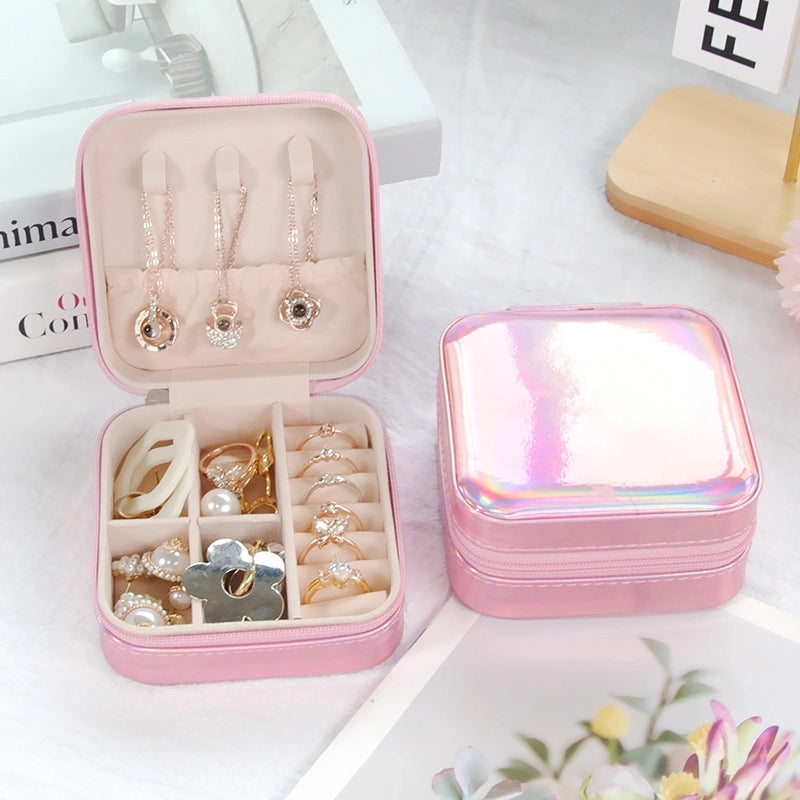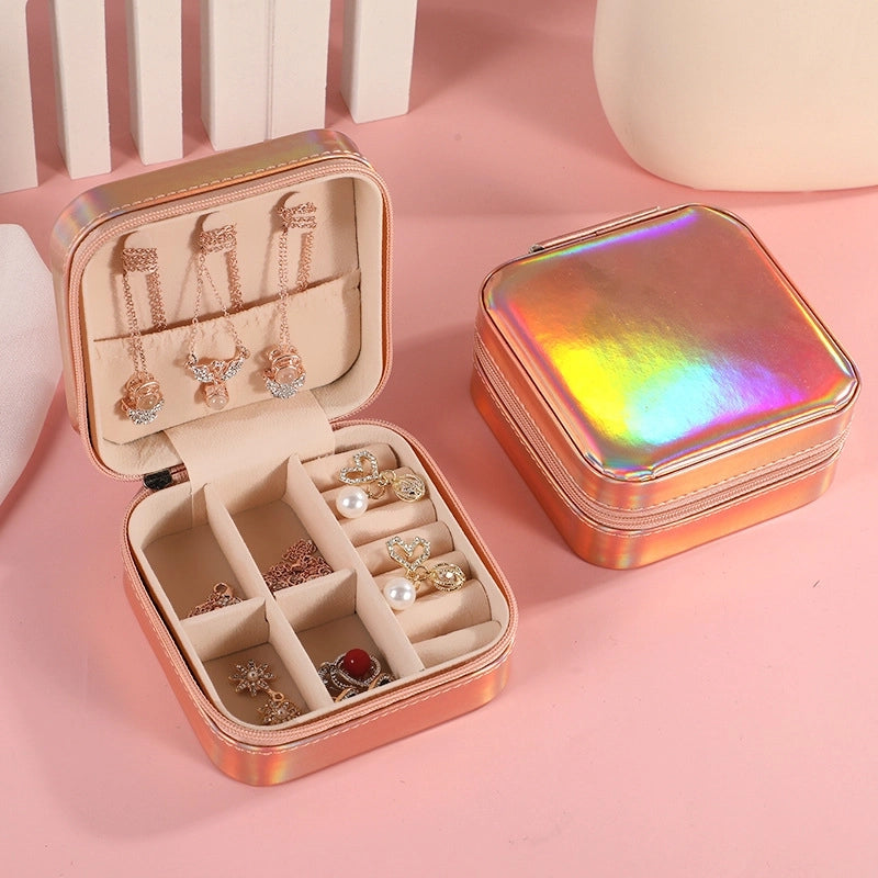 Jewelry Box Simple Mirror Pu Laser Jewelry Box Travel Portable Ear Stud Necklace Storage Box In Stock