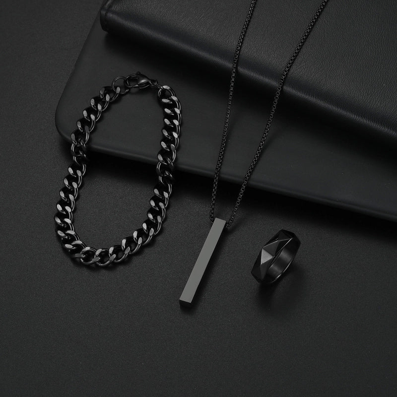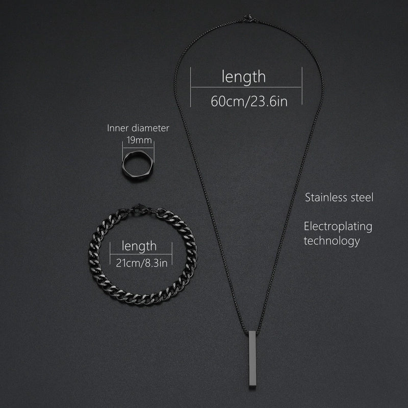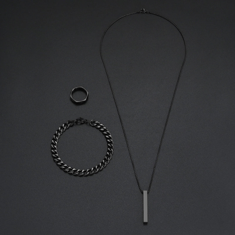 Be the first to review “Jewelry Hip-Hop Retro Solid Color 304 Stainless Steel Black Plated Jewelry Set” Cancel reply