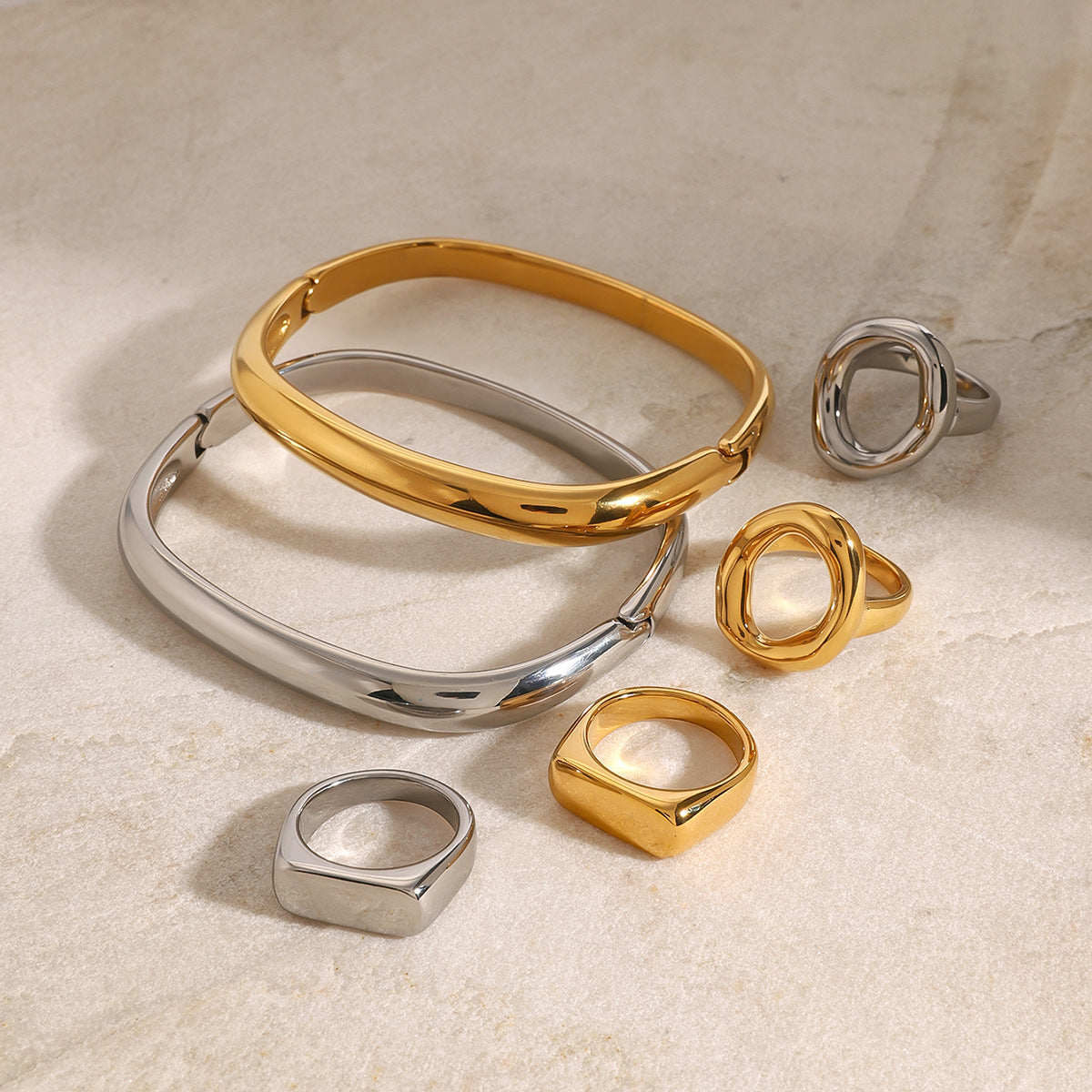 Jie Ding 18K Gold-Plated Stainless Steel Geometric Ring Buckle Bracelet Titanium Steel Jewelry