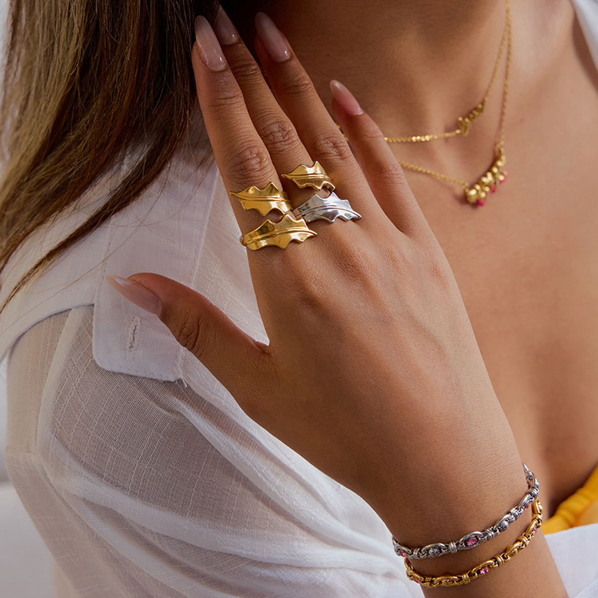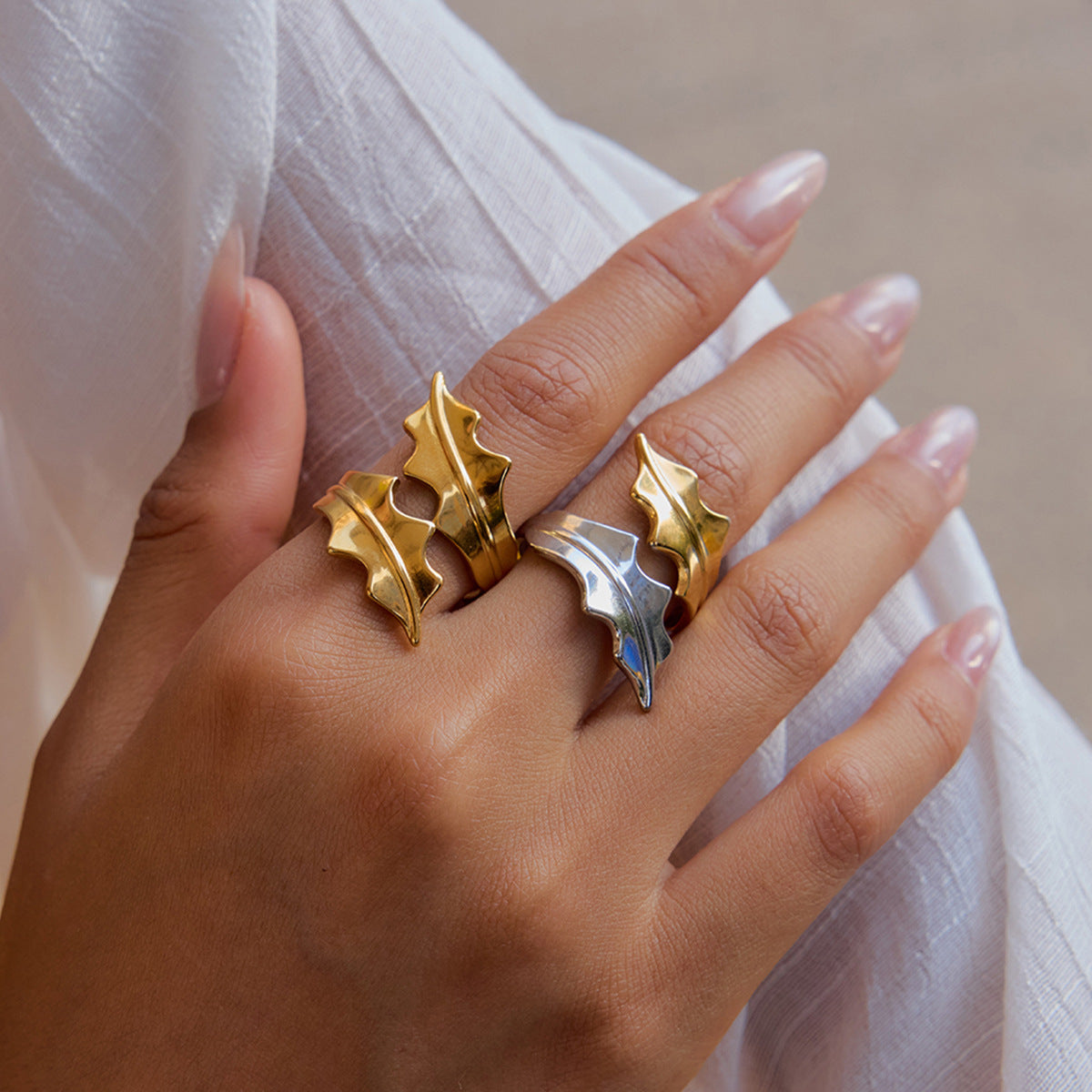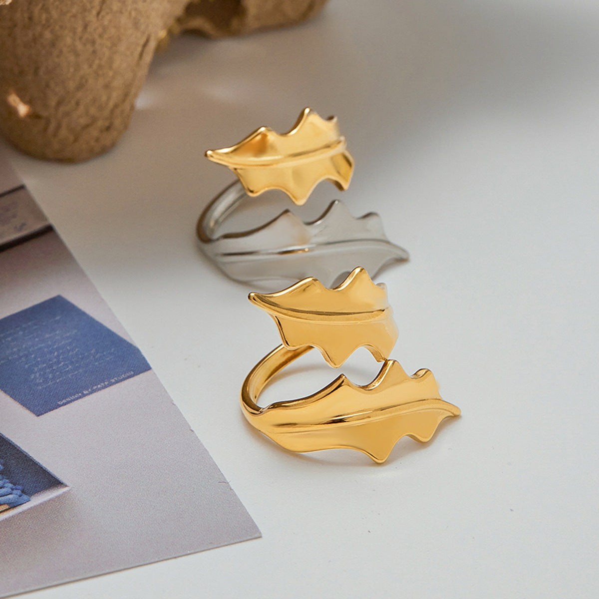 Jie Ding Leaf Ring Titanium Steel Jewelry Hot-Selling Stainless Steel Rings